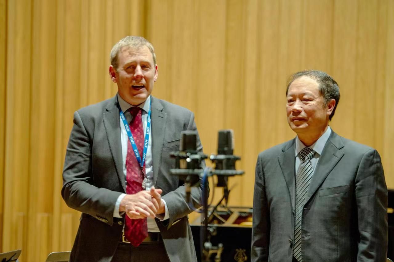 5月23日中午,best365附中学生参加了切特姆音乐学校“午间音乐会”活动,演奏多首作品。当晚,“聆听:年轻的声音——首届中英青少年音乐周联合专场音乐会”在切特姆音乐学校卡罗莱音乐厅拉开帷幕。切特姆音乐学校汤姆•雷蒙德校长、尼古拉•史密斯(Nicola Smith)校长、中国驻曼彻斯特总领馆陈学锋领事、王婷领事、任宇领事等嘉宾出席音乐会。切特姆音乐学校管乐系、弦乐系、钢琴系、作曲系等师生及社会各界听众现场聆听。赵旻书记和雷蒙德校长分别致辞。