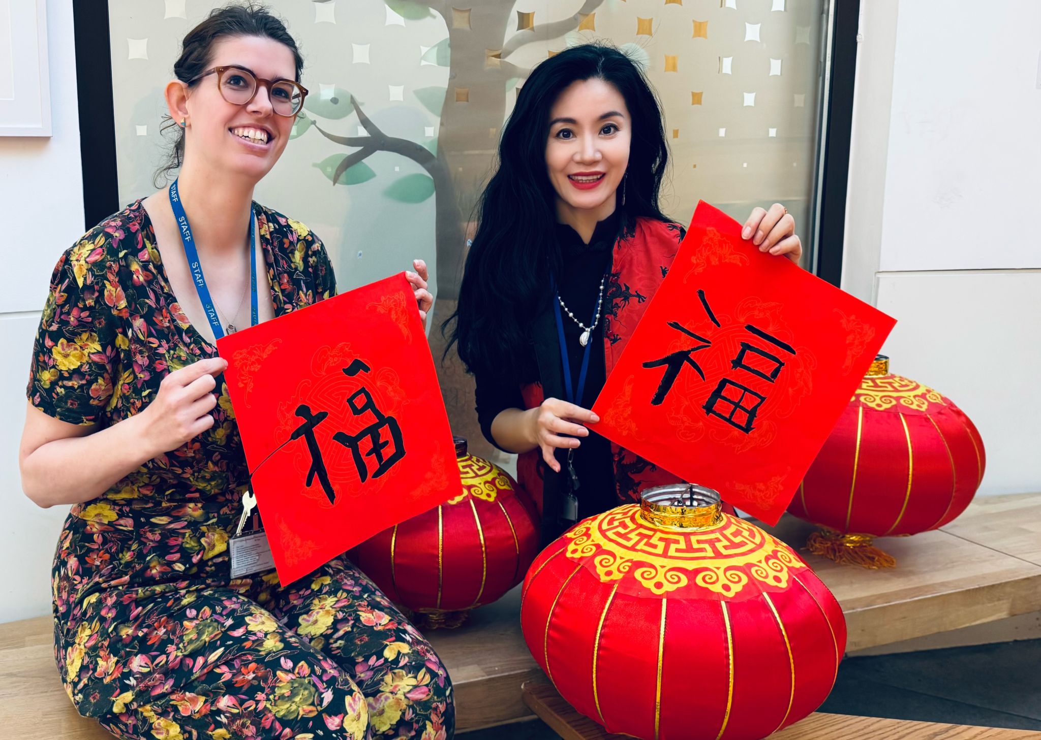 本次新春活动以“听中国音乐,讲中国故事,迎中国新春”为主题,涵盖了丰富多彩的文化体验——切特姆音乐学校教职工共同学习了春节常用祝福语,并学唱中国歌曲《新年好》,在欢快的旋律中感受春节的喜庆氛围;音乐孔子课堂与切特姆音乐学校国际部联合主办了“快快乐乐写福字”活动和“欢欢喜喜踢毽子”比赛,让学生们亲手书写象征吉祥的“福”字,体验中国传统体育游戏,将欢乐带入校园。