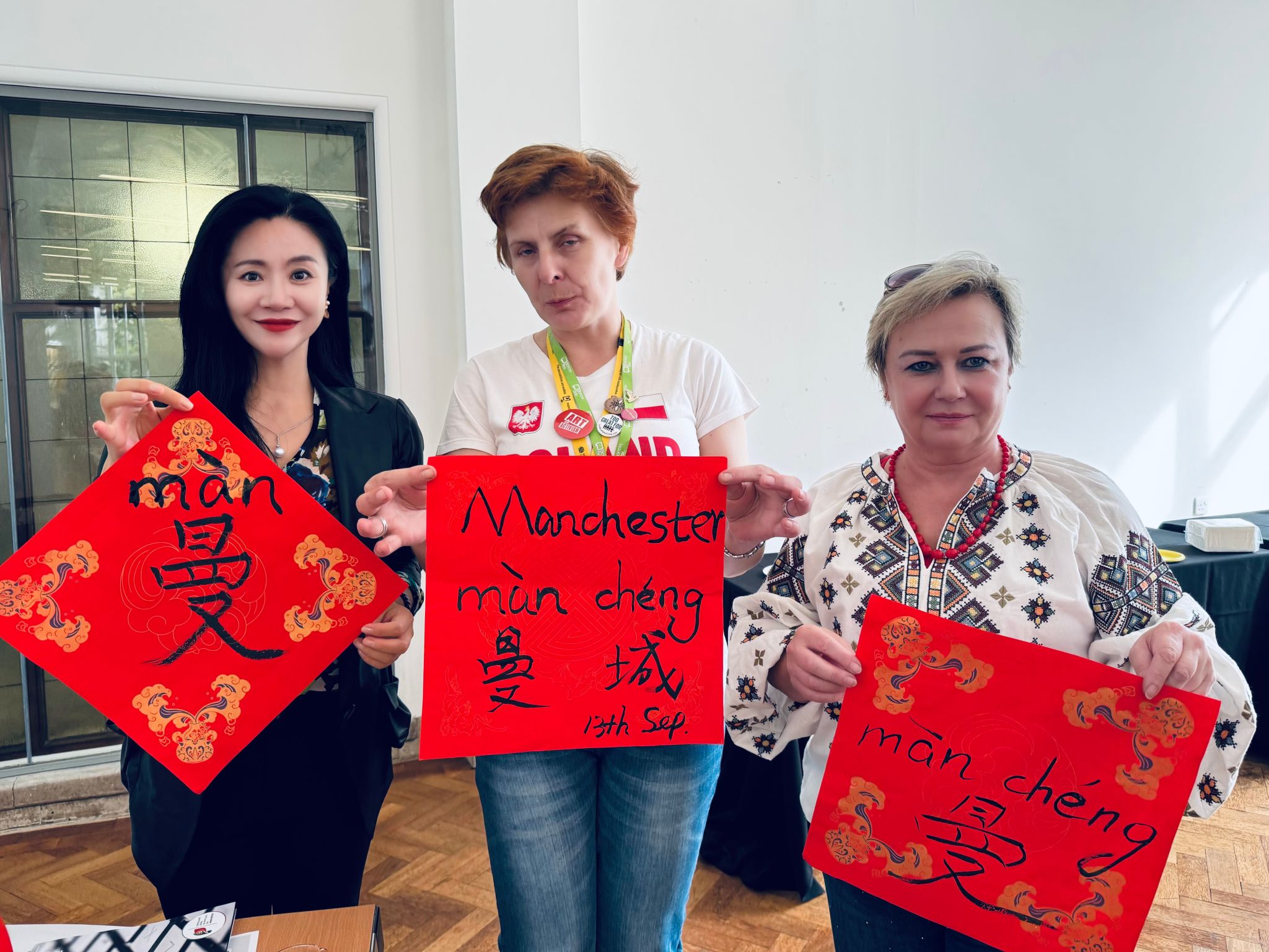 活动也收获了来自不同群体的积极反馈。曼彻斯特中央图书馆服务发展部协调员亚历西亚·贝内代蒂(Alessia Benedetti)和部门负责人安吉拉·罗克利夫(Angela Rawcliffe)表示:“非常欢迎中文音乐教室参加中央图书馆的活动。这类活动不仅让市民体验到别具一格的中国文化,也丰富了我们的多元活动内容。期待未来中文音乐教室带来更多具有音乐特色的交流活动。”曼城退休教师约翰(John)分享道:“我从教几十年,始终关注不同文化的教育价值。今天的活动让我真切感受到中文与书法的魅力。我觉得这样的体验对孩子们尤其重要,能让他们更开放地理解不同的文化世界。”一位在曼城生活数十年的华人也动情地表示:“作为移民,这样的活动让我有一种回到故乡的亲切感。能把我们的文化介绍给更多英国朋友,我感到非常骄傲。希望以后这样的活动越来越多。”