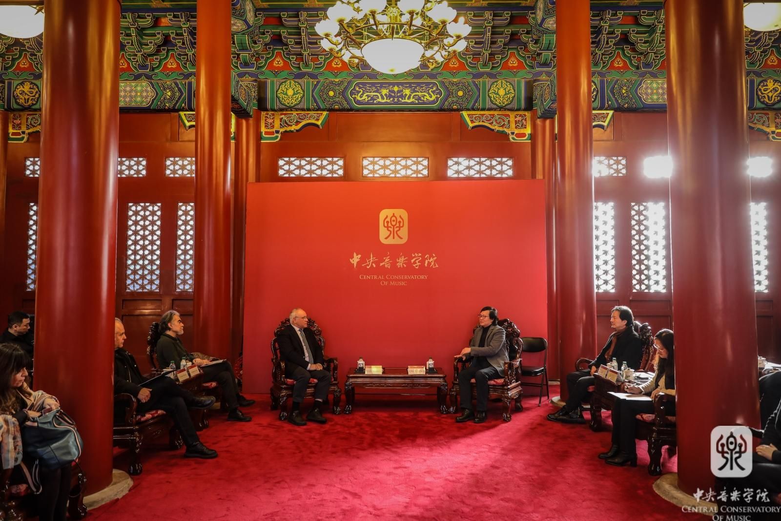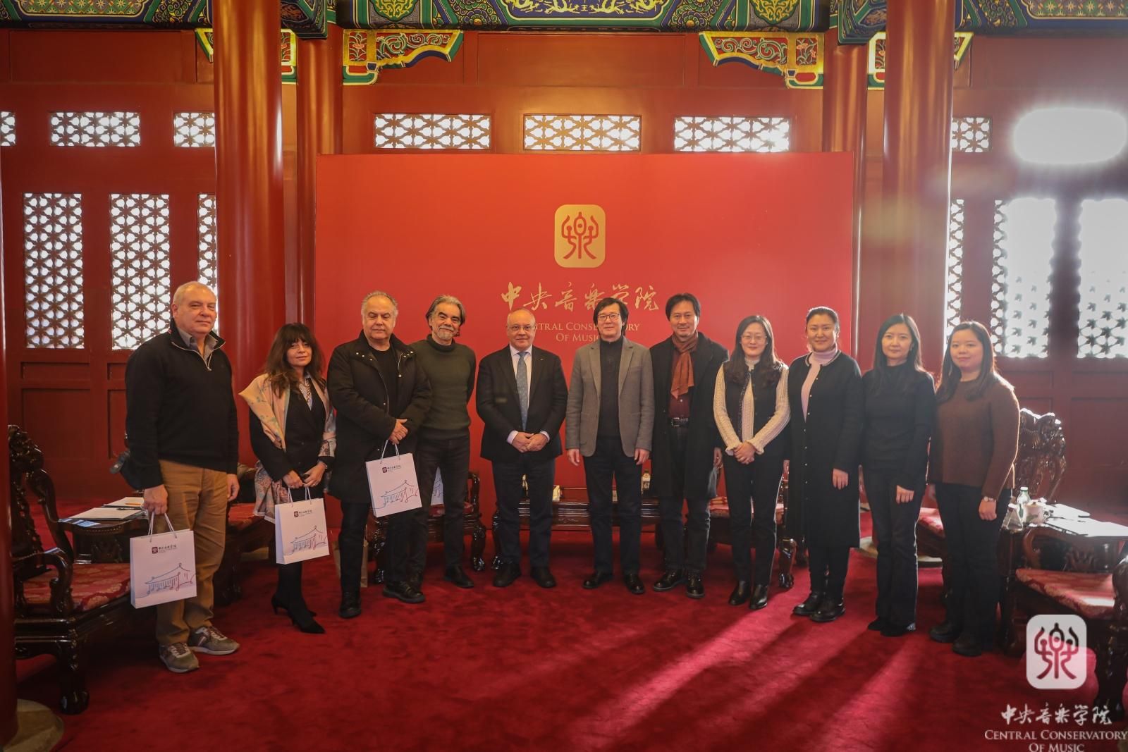 12月3日,意大利佛罗伦萨音乐学院院长乔瓦尼·普恰尔玛蒂教授、钢琴专业詹保罗·努蒂教授、大提琴专业卢西奥·拉贝拉·丹兹教授、国际办公室主任乔治·阿尔比亚尼教授和国际办公室协调员安娜·玛丽亚·伊曼纽尔女士到访best365,秦文琛副院长在南大殿与来宾进行了会谈,音乐人工智能和科技信息系主任李小兵教授、声乐歌剧系副系主任孙媛媛教授、管弦系大提琴教研室主任马雯教授、国际交流处处长陶倩以及科长柴扉陪同出席。