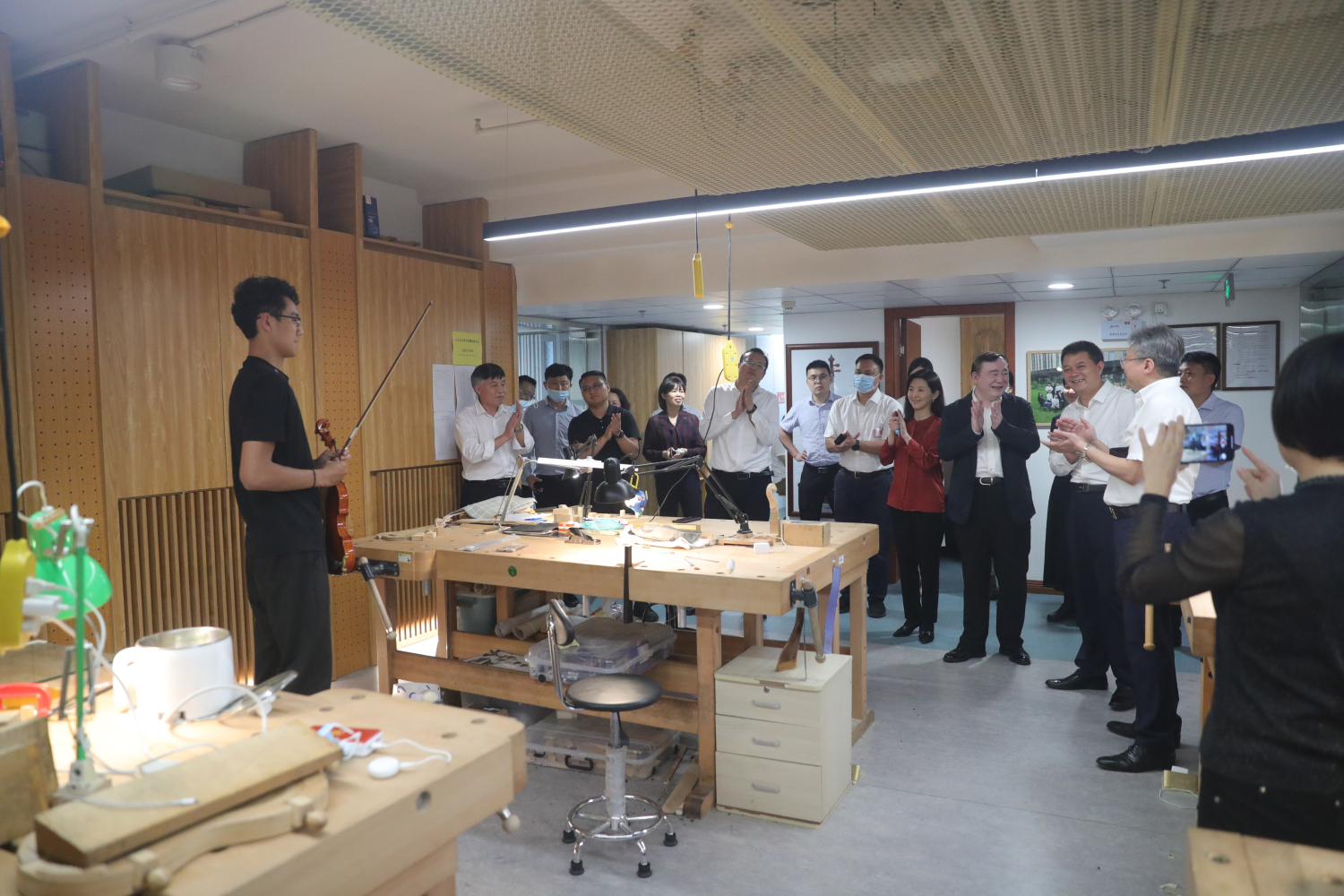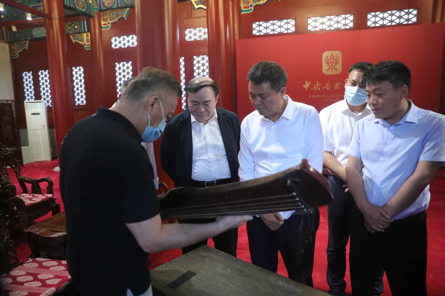 会后,兰考县委领导一行参观了王府南大殿、西小院,听取了唐琴“太古遗音”的介绍和古琴曲《离骚》,随后参观了提琴制作研究中心,深入了解提琴制作工艺。