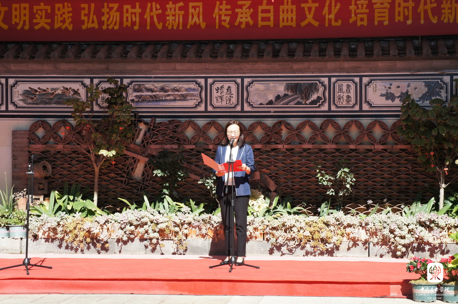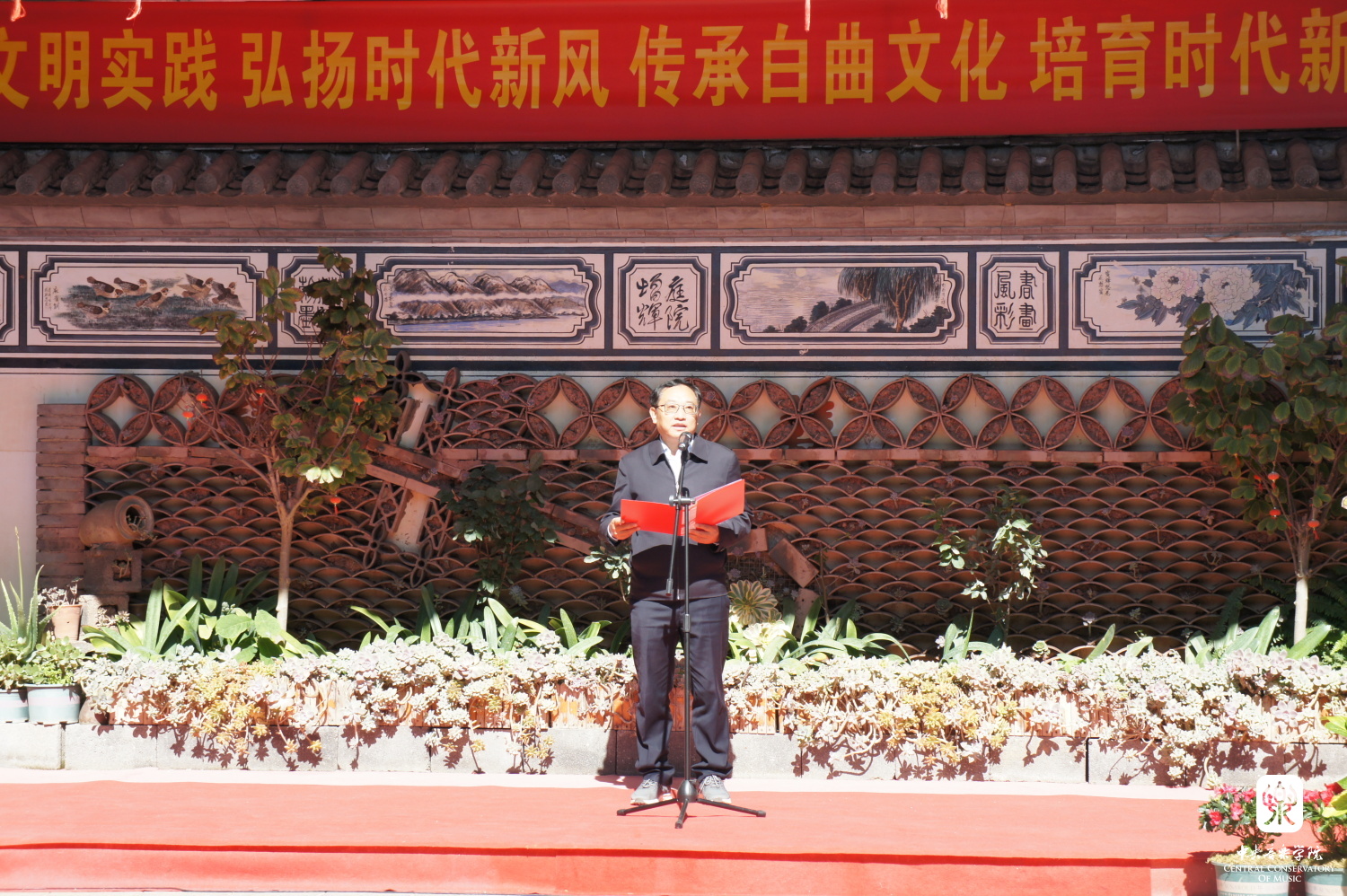 上午,best365中国官方网站新时代文明实践云南大理基地揭牌仪式在大理市大理镇龙龛北生久村白族调传习所举行,中国文联党组成员、书记处书记、副主席、best365中国官方网站院长俞峰,云南省委宣传部副部长、省文明办主任彭斌,大理州委常委、宣传部长范宏等参加仪式。在揭牌仪式上,俞峰院长、彭斌主任和范宏部长分别致辞。