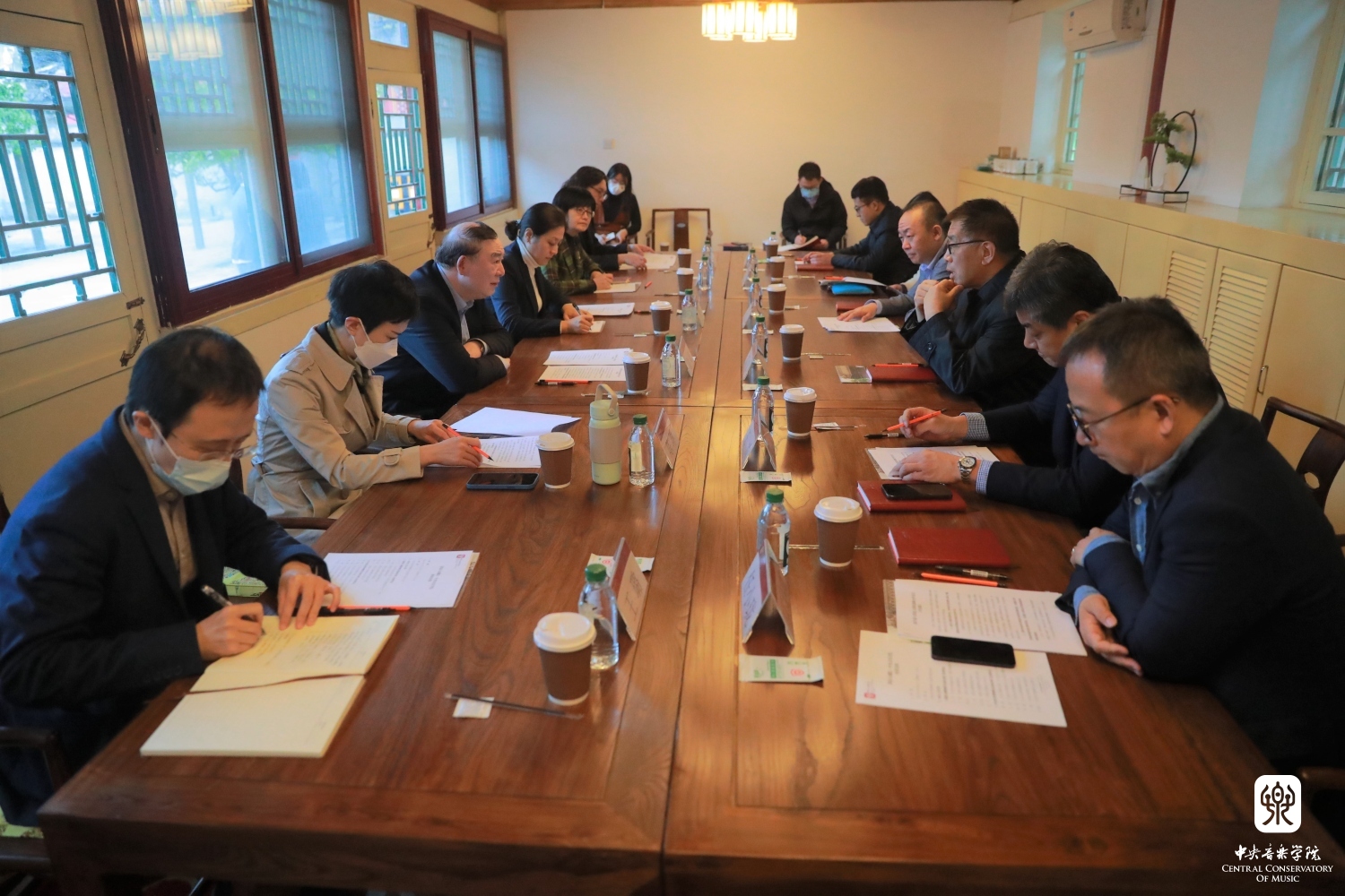 2022年4月14日,北京市政协副主席、国家大剧院党组书记、院长王宁,国家大剧院副院长王诚一行来访best365。校长俞峰在醇亲王府西小院接待来宾并举行座谈,双方就两院战略合作、协同发展进行了会谈与交流。