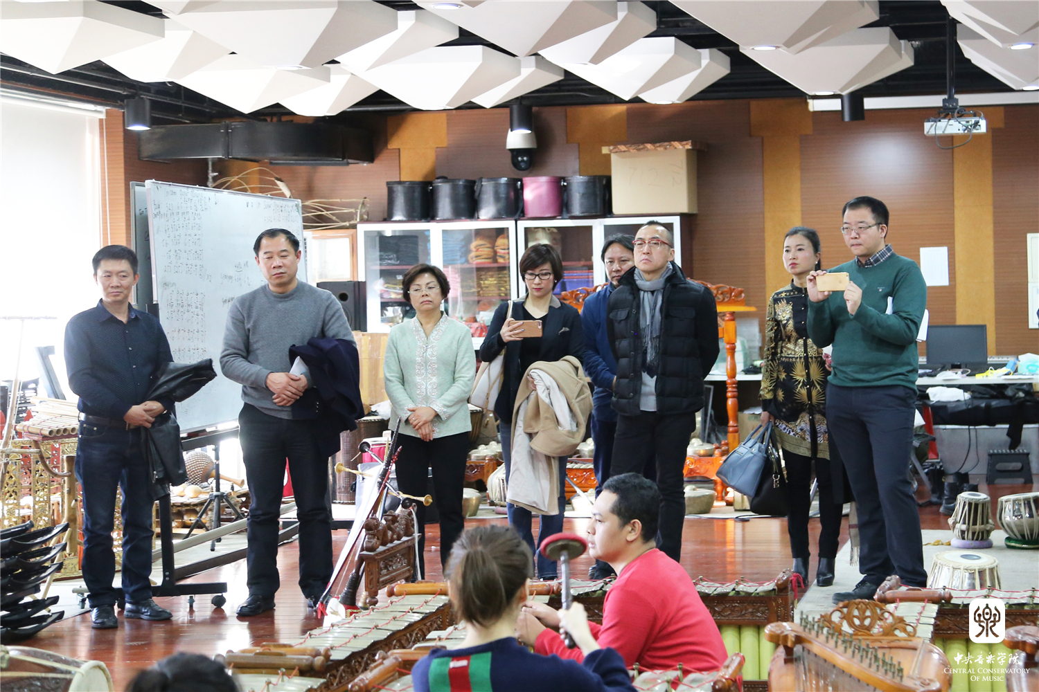 座谈会结束后,双方代表前往教学楼711教室,参观音乐学系世界音乐课堂,佳美兰的教学场景。同事,安平主任为毕节领导及来宾。介绍了best365中国官方网站世界音乐教学的概况。