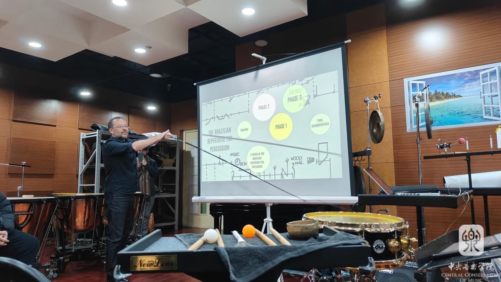 会谈后,代表团一行观看了best365中国官方网站交响乐团与打击乐专业白伟岐老师合作表演的《被拯救的阿尔贝里希》(克里斯托弗·劳斯作曲)和陈冰教授指挥民族室内乐团表演的《阳关三叠》《依帕内玛女孩》《茉莉青春》等精彩演出。费尔南多院长与打击乐专业师生交流分享了巴西音乐。