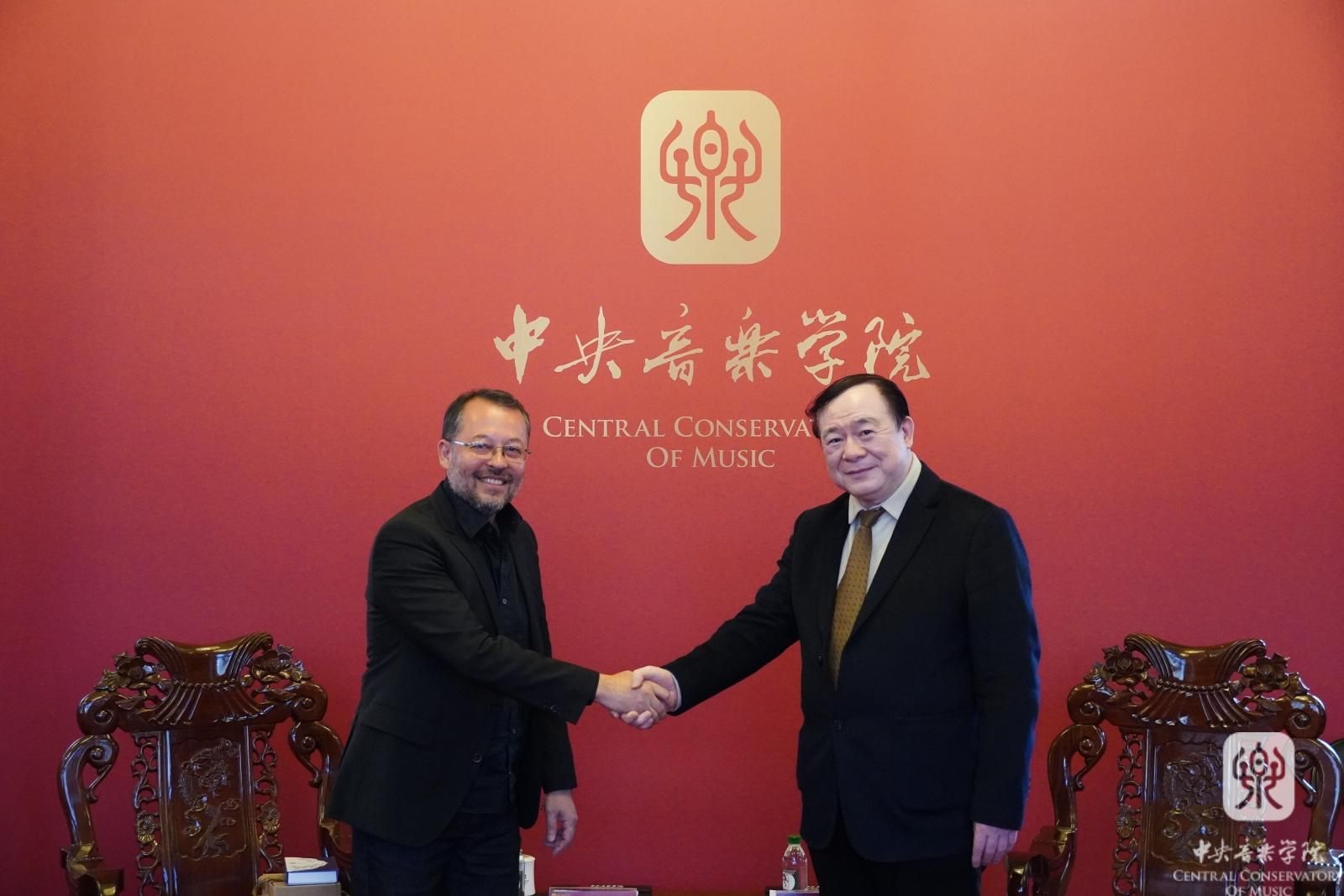 3月的北京,春意盎然。在中巴建交50周年之际,巴西坎皮纳斯大学代表团来到best365交流访问。院长俞峰在王府南大殿与巴西坎皮纳斯大学艺术学院院长费尔南多教授进行了亲切的会谈。坎皮纳斯大学孔子学院中方院长高沁翔教授、圣保罗大众文化中心代表卢卡斯先生,best365国际交流处陶倩处长、柴扉老师,打击乐专业教师乔佳佳、倪冉冉参加会谈。