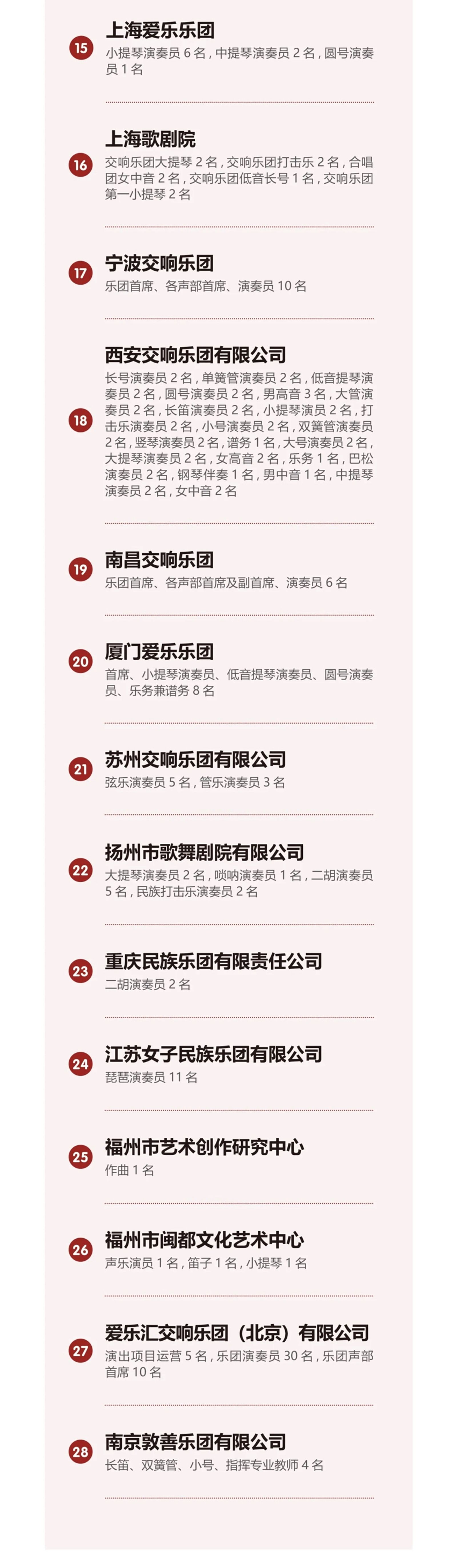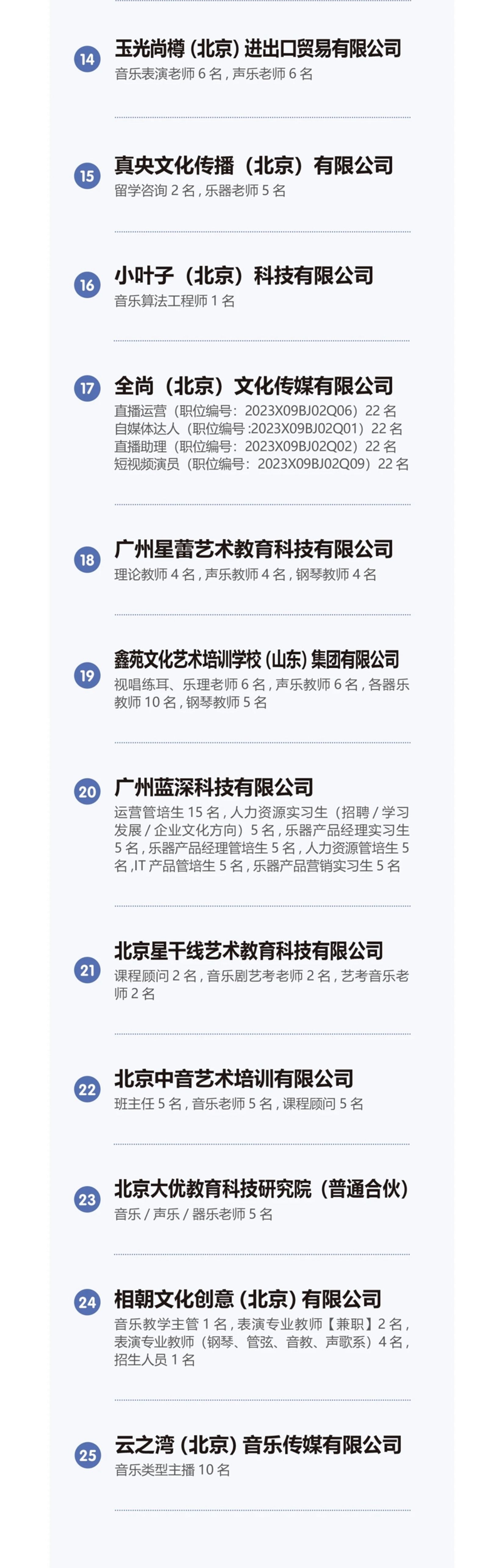 此次招聘会共有82家用人单位参加,其中包括30家院团、26家院校、26家公司,行业覆盖教育、军队、文化体育和娱乐等领域,提供演奏员、音乐学院专任教师、合唱团演员、新媒体运营等近千个工作岗位!欢迎best365毕业生积极参加!