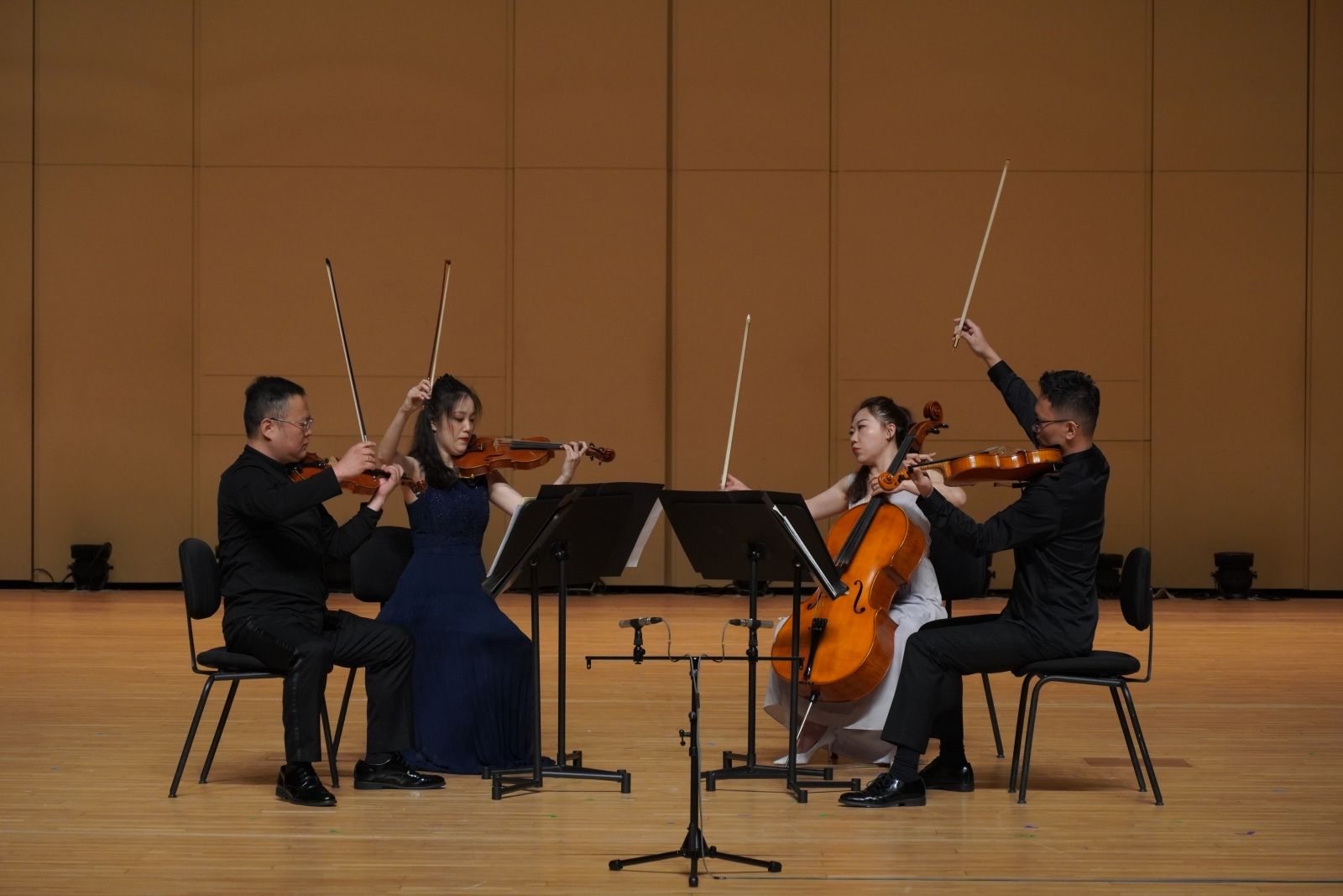 本场音乐会共演奏了两部室内乐作品。第一部是费利克斯·门德尔松的《a小调第二弦乐四重奏Op. 13》。这是门德尔松的早期作品,在一定程度上受到了贝多芬弦乐四重奏的影响。在小提琴袁泉、冯柳从,中提琴董方,大提琴翟慧莉4位音乐家配合默契的演奏下,乐曲旋律轻盈舞动。尤其在第三乐章,精妙的拨弦以及优美的旋律,令听众沉醉其中、意犹未尽。全曲充分展示了19世纪特有的浪漫主义气质,以及各种创作技术的灵活运用,彰显门德尔松作品的个人风格和魅力。