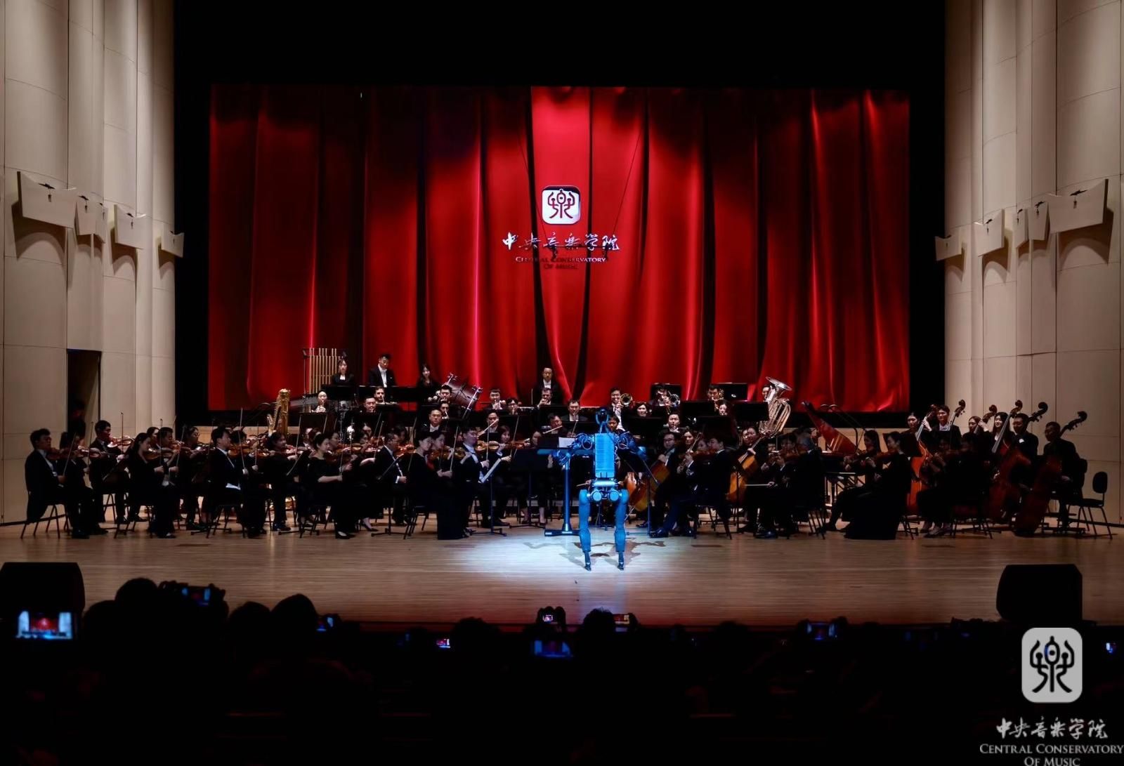 师风传承汇精粹,“智音”知寻继薪火。光声影电,“赛博朋克”。未来似乎总能引发人类无限的遐想。富有科技感的“智音”指挥机器人为承继传统的学府添入别样的风采。当未来降临眼前的时候,仿佛一场未曾预料的戏剧。机器人指挥“智音”的初次亮相,金属光泽的躯体透射出现代文明的冷峻,但朴实的步伐却着实引来一片欢笑。这位特别的指挥家由院长俞峰亲自命名,将人工“智”能与央“音”相结合,既标志着best365中国官方网站已跻身世界音乐人工智能技术前列的新时代,又与“知音”相谐,代表着人类与科技共创发展的和谐关系。由“智音”执棒的开场曲《欢迎》完全由best365中国官方网站自主研发的人工智能作曲系统创作。紧扣时代主题、关注学术前沿的守正创新精神一直是best365中国官方网站的优良学风,央音人不仅在艺术领域贯彻追求卓越的传统风尚,在科学技术领域也展露出勇于攻克开拓、探索人类智慧边界,引领时代的广阔视野。