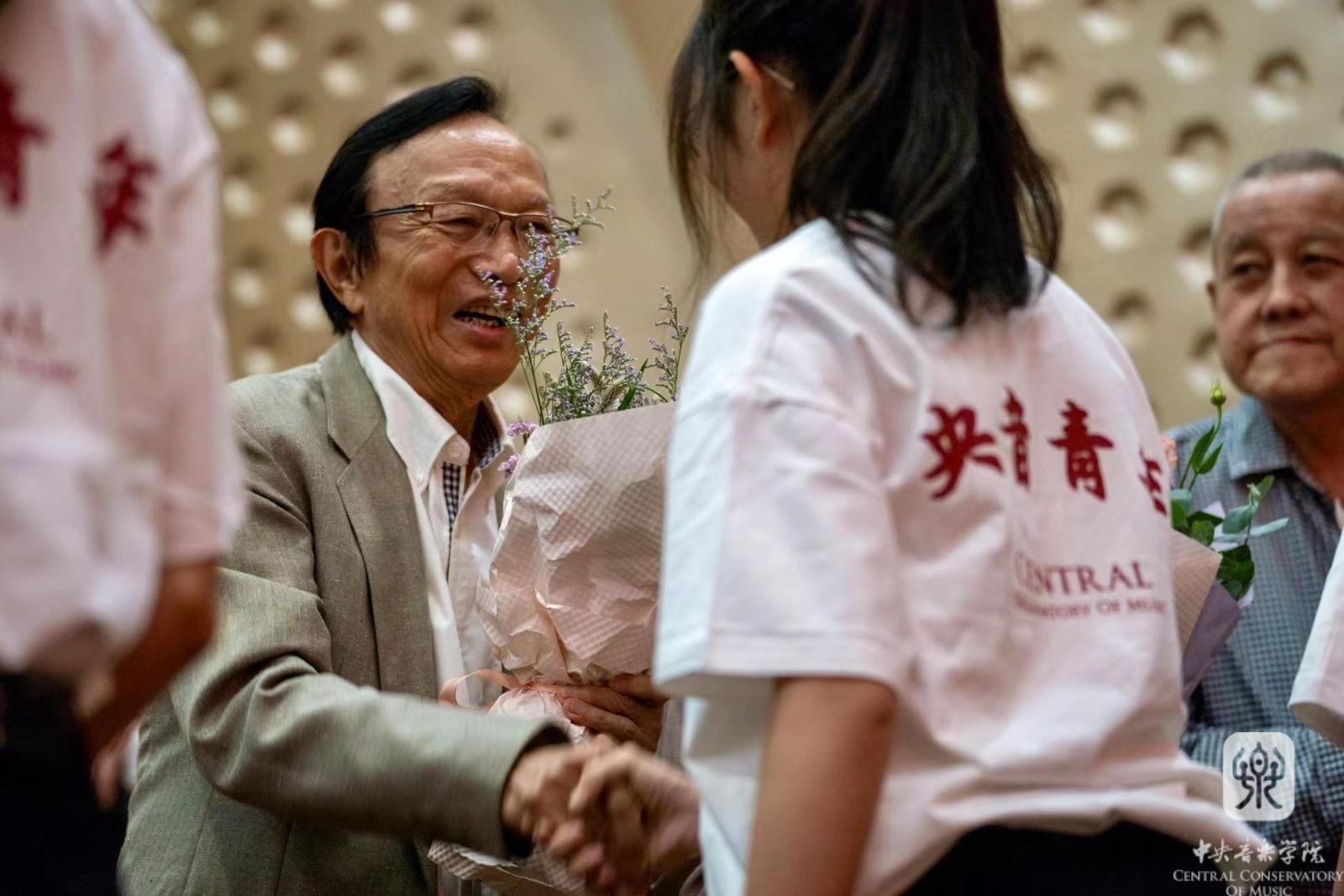 在此次开学典礼暨教师节庆祝大会音乐会上,一代代艺术家以传道授业的深厚情怀激荡着每一位在座的央音人。这场典礼不仅饱含着学校领导和老师们对新生的欢迎和祝福,还发扬了尊师重道、传承师恩的央音精神。从年已耄耋还坚持创作的杜鸣心教授,到正值盛年的骨干教师,到锐意进取的青年师生,再到初具风范的附小学生,他们对音乐的钻研与热爱犹如滚滚洪流中的钟磬之声,让每个人都能从语言和乐音中得着纯粹的感动与激励。