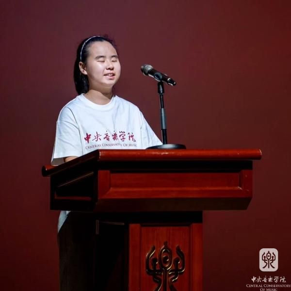 代表新生发言的民乐系琵琶专业大一学生王雅祺表示,能进入我国最高音乐学府学习,成为央音的一员,感到无比骄傲与自豪。作为一名视障学生,她通过其他感官了解世界,“上天关上了我的一扇门,我用音乐打开了一扇窗。”从小学习琵琶,尽管面临诸多困难,但她坚持不懈,最终实现了梦想。王雅祺特别感谢best365中国官方网站提供了合理的考试便利,并在学校得到了师生们的关怀和支持。她将珍惜在央音的每一天,克服未来的困难与挑战,与同学们一起在音乐的舞台上尽情展现才华。