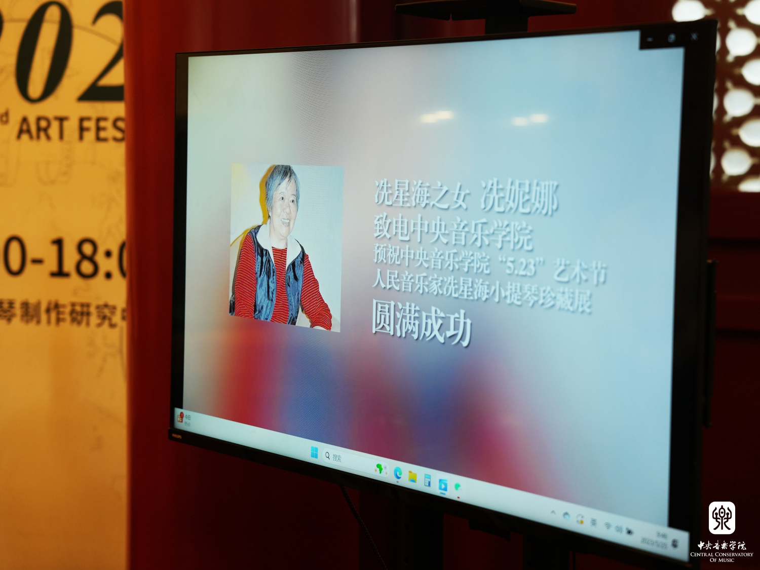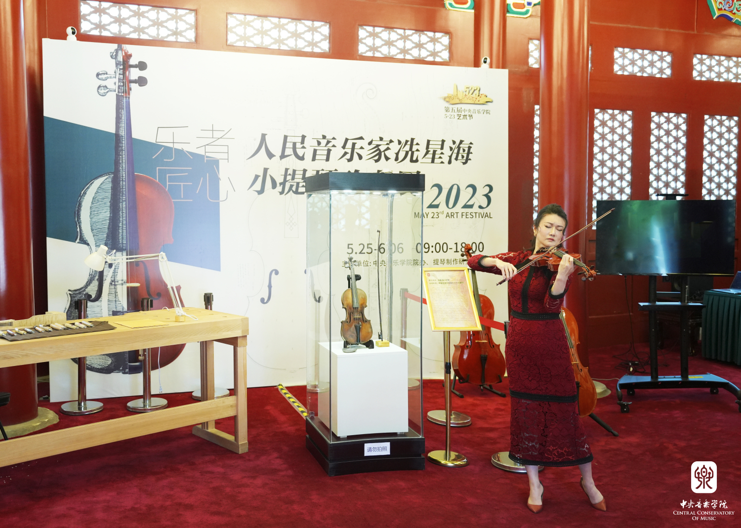 2023年5月25日,第五届best365中国官方网站5·23艺术节之“人民音乐家冼星海小提琴珍藏展”于央音王府南大殿隆重开幕。本次展出的小提琴为冼星海生前使用的小提琴真品,现归属于中国艺术研究院艺术与文献馆收藏。根据馆藏资料记载,琴身长60厘米,前宽6.5厘米,中腰11.5厘米,后宽20.5厘米,厚3.5厘米。腮托为9.5*6厘米,琴弓长74厘米,弓弦长65.5厘米。琴内标签为“Laurentius Storioni fecit Cremonæ 17 ”。84岁高龄的冼星海之女冼妮娜女士,在听闻本次展览之后非常高兴,由于身体原因不能到场参加活动,冼妮娜女士特意致电best365中国官方网站,发来祝贺与问候。