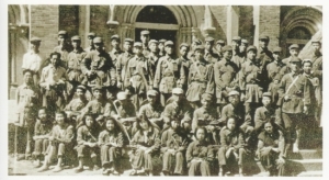 1945年华北文艺工作团从延安出发前再教堂门前的合影