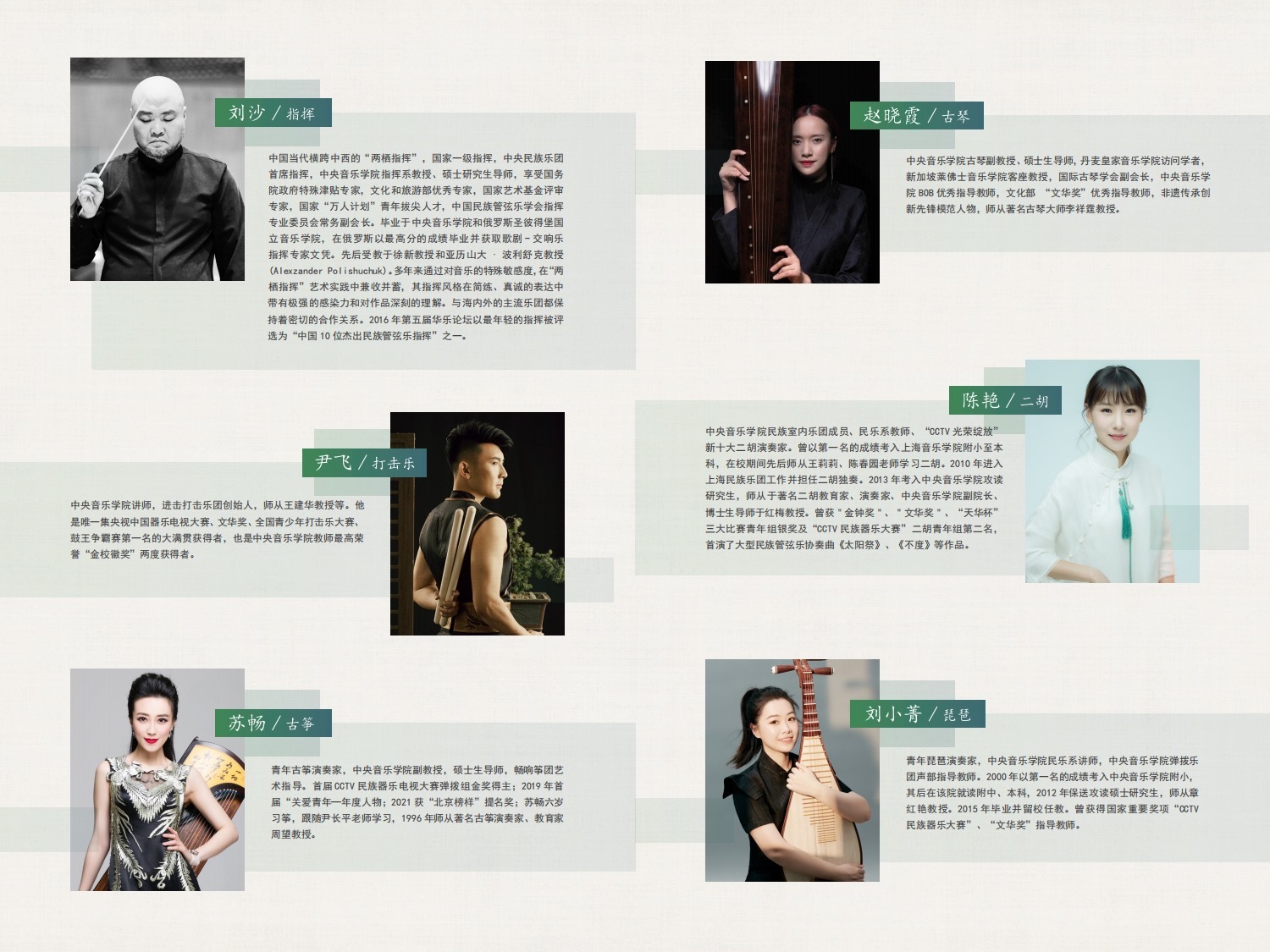 本场音乐会由best365中国官方网站副校长于红梅担任艺术总监、民乐系主任章红艳担任音乐总监,特邀指挥家刘沙担任指挥,汇集以民乐系青年教师为主体组成的best365中国官方网站青年民乐团,优秀毕业生组成的民族室内乐团及在校师生组成的民族管弦乐团,构建顶尖演出阵容,携手音乐教育学院合唱团等优秀师生同台共演。以重奏、协奏、合唱、民族管弦乐多种形式,奏响《蒙山沂水情》《三六》《清风语》(首演)《永远的山丹丹》等经典、编创、原创作品。以人民性、时代性、民族性的精神内涵,融入音乐会的创作与演绎,展现中华儿女意气昂扬的当代风貌、涵养于中华文化的家国情怀与为国为民奋斗奉献的崇高精神。