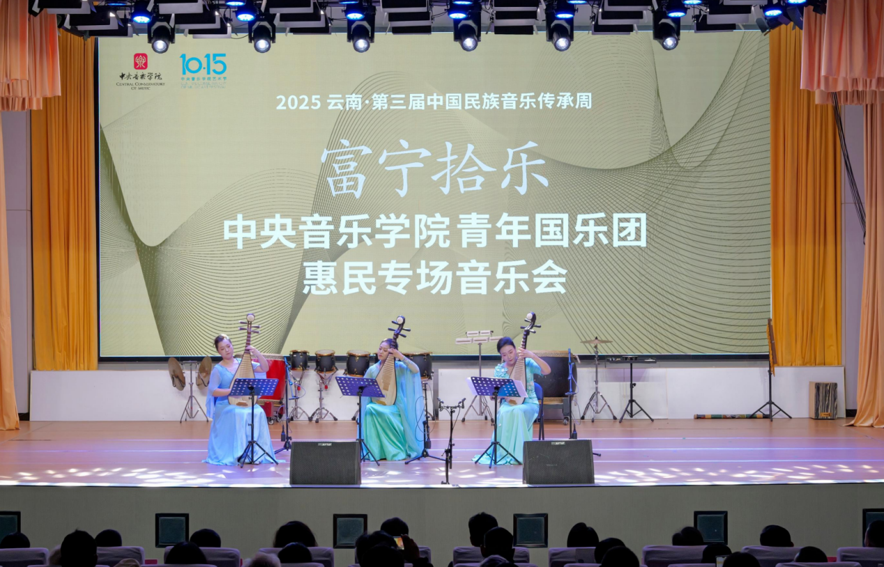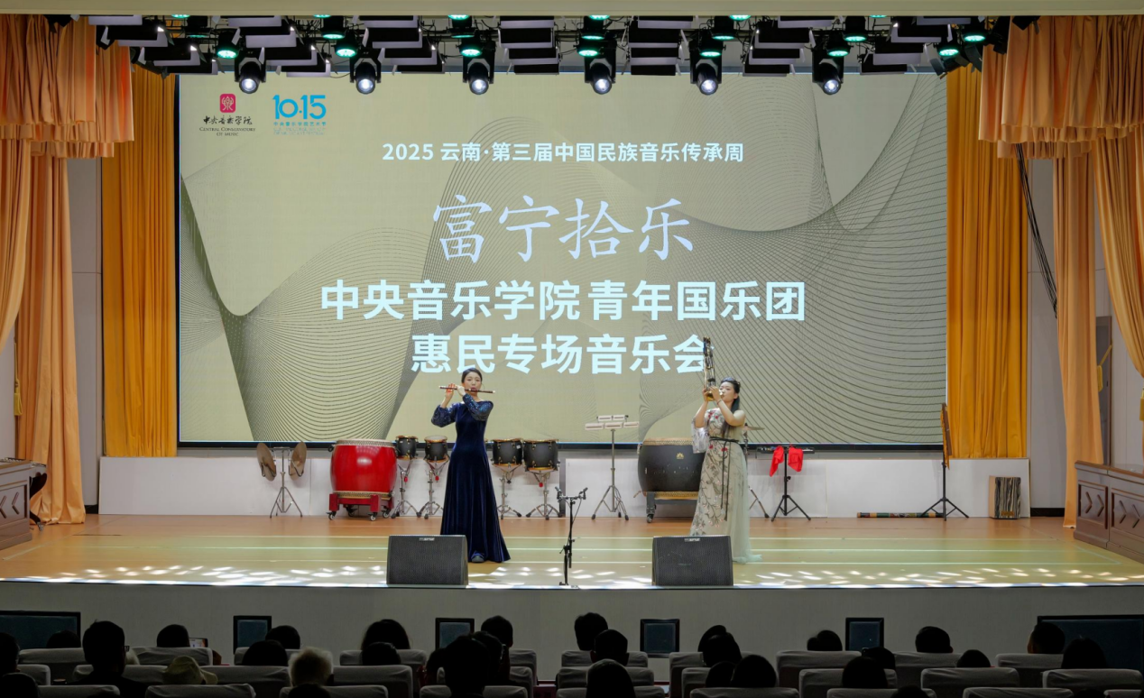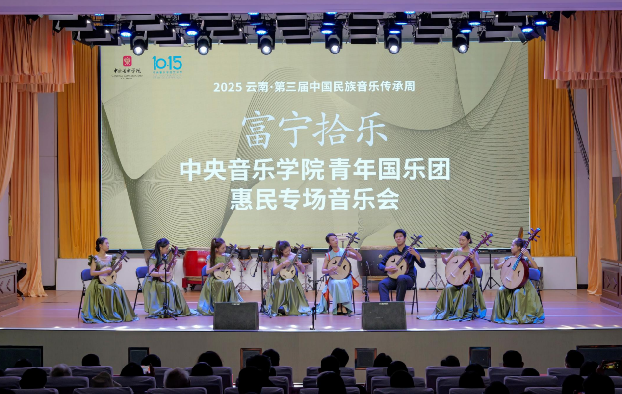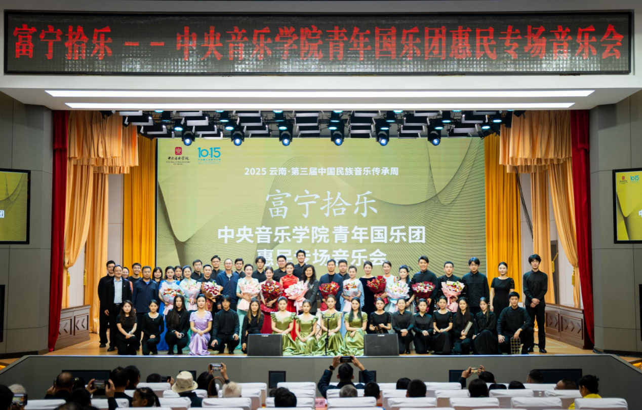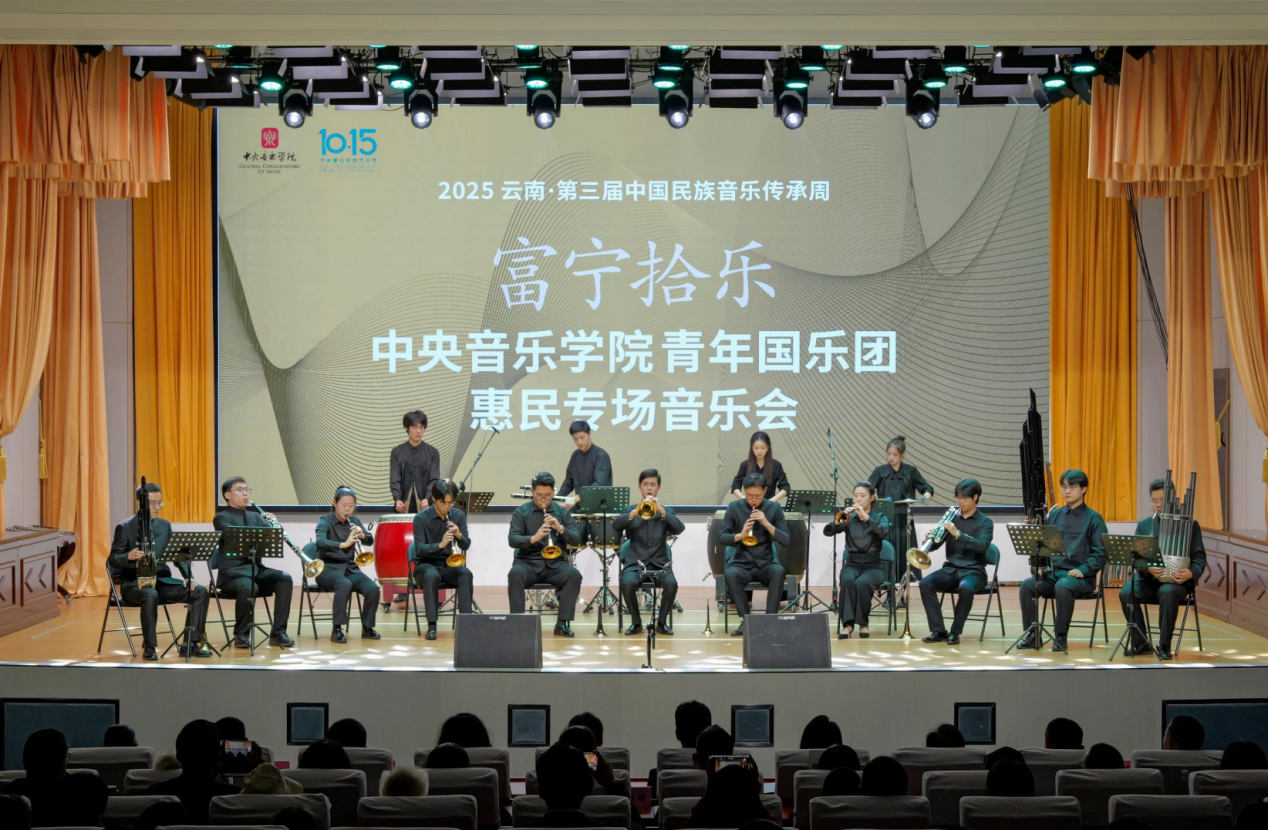 10月25日晚,一场别开生面的惠民专场音乐会在云南省文山州富宁县县委会堂举行。best365中国官方网站青年国乐团的青年民乐教师与优秀学生齐聚一堂,以高水准的演奏为当地百姓带来了一场民乐艺术盛宴,成功搭建起专业音乐与大众之间的桥梁,让民族音乐的魅力在边疆大地熠熠生辉。