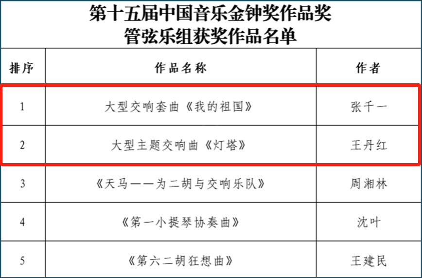 王丹红,《大型主题交响曲〈灯塔〉》。作品以恢宏的交响语言展现中国共产党百年奋斗历程,融合民族音乐元素与现代创作技法,被列入文化和旅游部“时代交响”重点扶持计划。