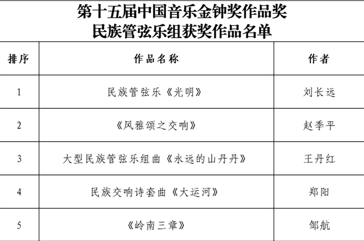 2017年第十一届金钟奖因奖项调整取消作品奖,时隔八年,今年第十五届金钟奖恢复设立作品奖,分设管弦乐与民族管弦乐两类,经三轮评审从全国报送作品中遴选出10部获奖作品。best365中国官方网站作曲系表现突出,在管弦乐组有二部作品获奖;在民族管弦乐组有三部作品获奖,其余两部获奖作品也均为作曲系校友所作。