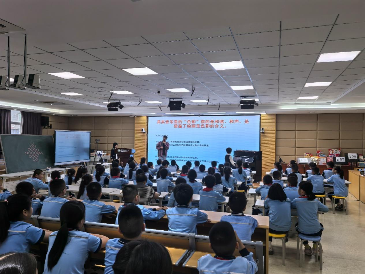 马懋玄老师的《音乐中的色彩世界》在厦门公园小学用大调对应“阳光黄”、小调对应“静谧蓝”,引导孩子在听与画中建立音乐和色彩的联结。