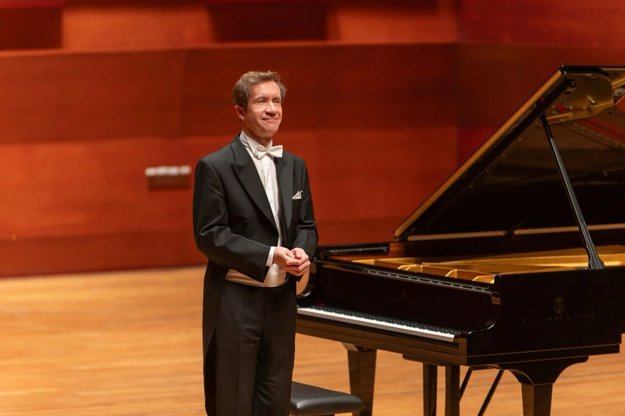 音乐会的上半部分,以贝多芬《d小调第十七钢琴奏鸣曲“暴风雨”》开场,仿佛一部严谨的文学巨著缓缓展开了第一页。下行动机的连接中并没有渲染戏剧性的电闪雷鸣,从第一个弱奏和弦开始,一种沉思与悬念的氛围一直延续到曲终。他的“暴风雨”是内在的、心理层面的,触键清晰而节制,声部线条构筑的复调独立且分明,即使在疾速乐段中,每个音符仍保持着颗粒感与透明度。演奏家将力量蕴藏在内敛之中,戏剧张力通过声部间的对位与节奏的微妙变化流露;即使在快速乐段中也保持每个音符的质感,展现出对乐谱内在结构的全然把握。