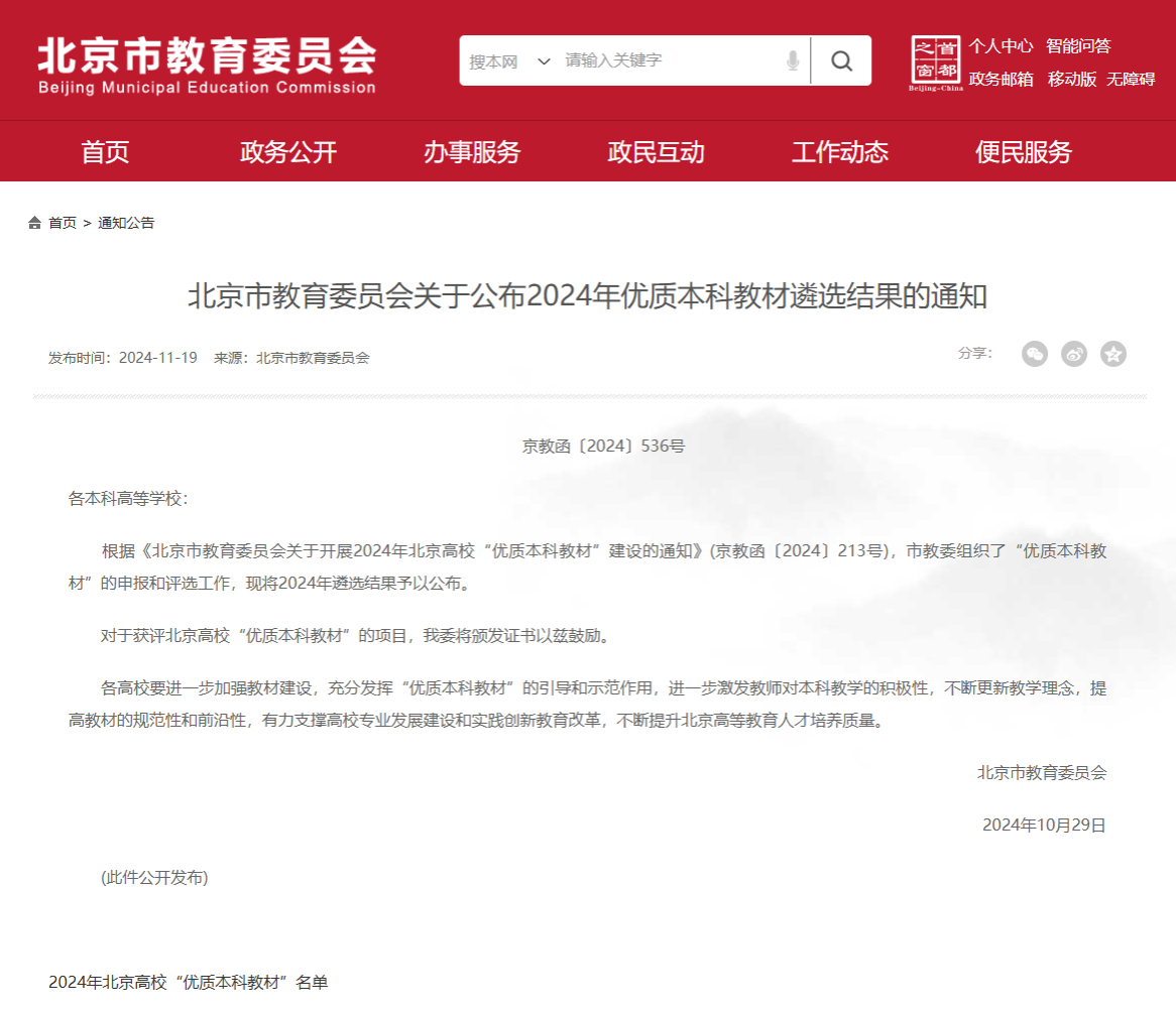 遴选结果的通知》(京教函〔2024〕536号),best365《对位法》(主编:周娟)获评“2024年北京高校优质本科教材”。