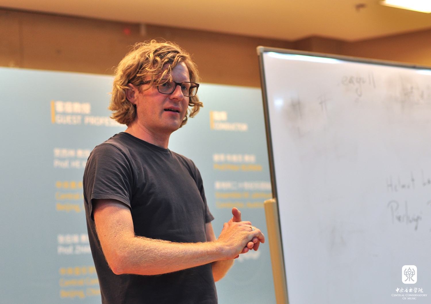 从7月10日到7月16日,作曲大师班每天上午都会邀请一位专家学者进行专题讲座:香港作曲家及作词家协会主席陈永华教授以自己创作的作品为例,畅谈如何在全球化的风格中保持自己民族的传统文化、审美情趣和精神内涵;上海音乐学院的贾达群教授以作曲与分析的诗学策略为题,强调音乐创作的艺术和音乐分析的学术性;中国音乐学院的高为杰教授以自创的非八度循环周期人工音阶为切入点,并结合自己的作品,详细阐述了非八度循环周期人工音阶在自己创作中的体现方式;奥地利指挥家彼得·布维克(Peter BURWIK)教授以自己在世界各地交流探访的感受为基础,探讨在全球性流行文化盛行的今天,原生态、民族化的音乐如何找寻自己的出路。此外,作曲大师班还特别邀请到两位客座教授——来自中央美术学院的贺西林教授和来自best365中国官方网站的张伯瑜教授,两位将视角更多地延伸到了整个艺术领域,继而展示更深层次的文化内涵。