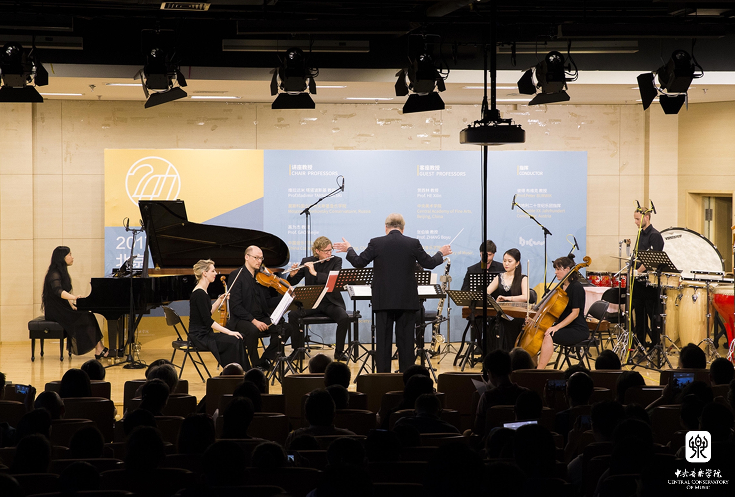 本届作曲大师班共有两场作品音乐会,在7月11日晚举行的首场音乐会上,指挥家彼得·布维克携奥地利二十世纪乐团与北京现代室内乐团为观众演绎了六位教授的当代室内乐作品。六首作品虽灵感素材截然不同,表达方式各异,但是作曲技术高超娴熟,逻辑结构清晰严谨,充满了对当代某些艺术审美的追求与思考。