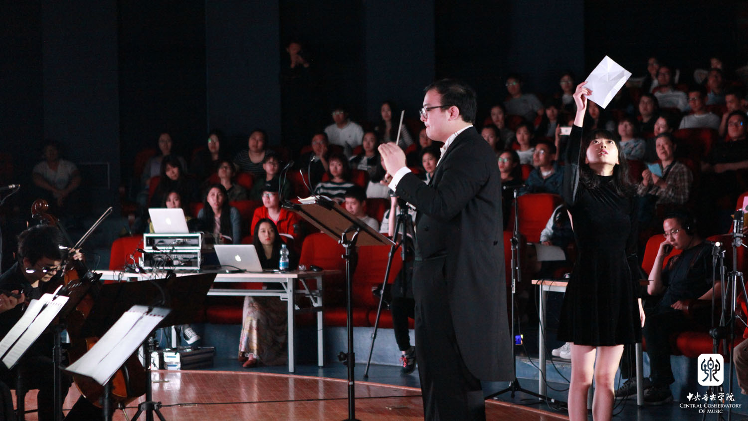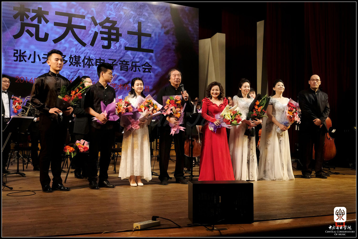 张小夫教授现场操控电子音乐、与台上的乐队、人声、画面,与场内各个角度布置的音响形成一个复杂的音场。体现了电子音响科技结合现代作曲手法,表达了东方文化特有的古典情怀。best365中国官方网站交响乐团与吴碧霞、张少等一流音乐表演艺术家的加盟演出,为音乐会的圆满演出又增添了颇高人气。