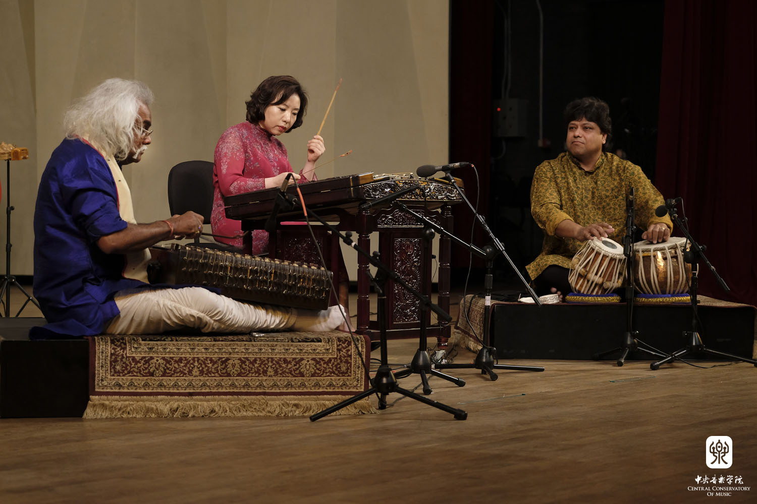 两位印度演奏家与中国扬琴演奏家刘月宁共同演绎作品《拉格·茉莉》/摄影:韩军 |