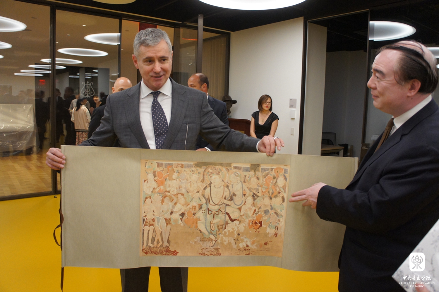 揭幕仪式上,俞峰院长向施坦威赠送了由我院王征老师临摹的新疆石窟"乐伎合奏"壁画。多家媒体对此活动进行了广泛报道。