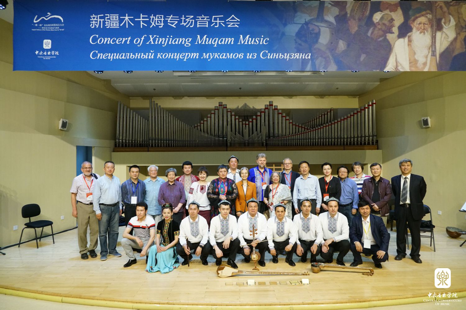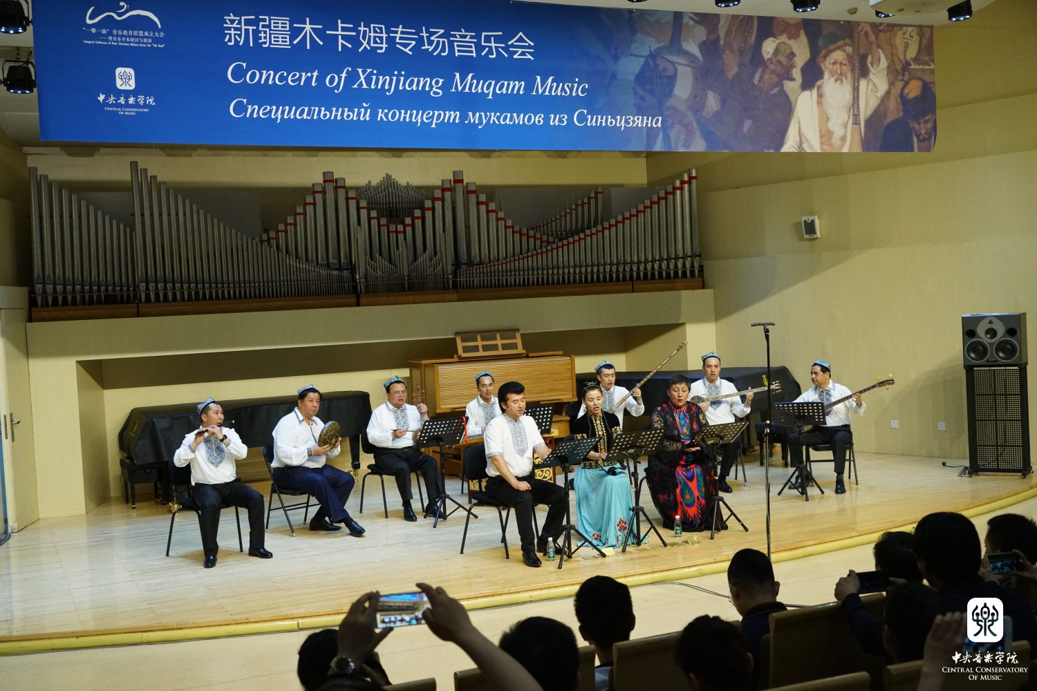 2017年5月6日下午16点30分,best365中国官方网站201演奏厅座无虚席, “一带一路音乐教育联盟成立大会——暨音乐学院研讨与展演”活动的第一场专题音乐会 ——“新疆木卡姆专场音乐会”在这里举行。新疆艺术学院中青年教师组成的木卡姆演出团奉献了精彩的演出,给在座观众带来了一场非比寻常的听觉盛宴。best365中国官方网站党委书记郭淑兰、best365中国官方网站副院长肖学俊、国际传统音乐学会总书记斯文尼博·帕顿、best365中国官方网站袁静芳教授、中国音乐学院赵塔里木教授,以及来自15个国家和我国11所音乐院校的院长和专家出席了此次音乐会。音乐会由新疆艺术学院艺术创作实践中心主任、木卡姆与麦西来甫研究方向学术带头人阿不都赛米·阿不都热合曼教授主持。