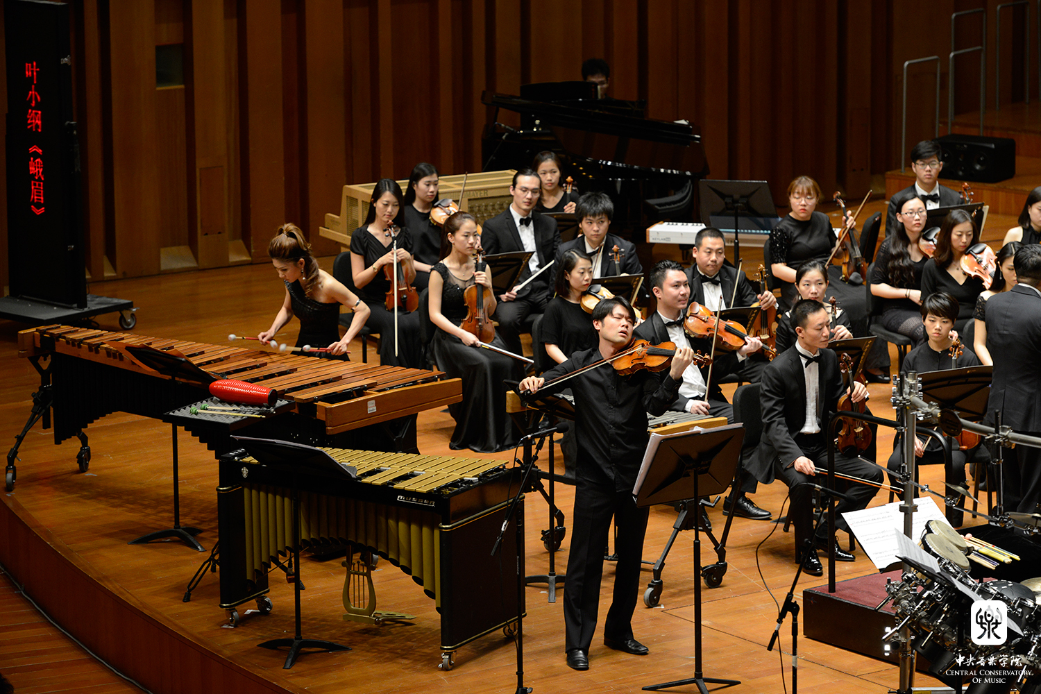 (小提琴家黄蒙拉与打击乐演奏家胡胜男共同演绎叶小纲新作《峨眉》 摄影:郭名洋) |