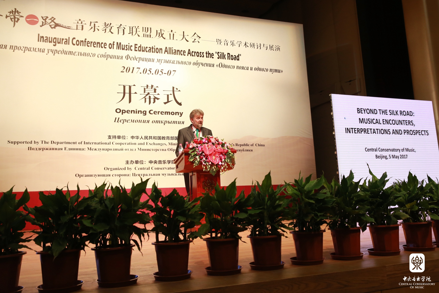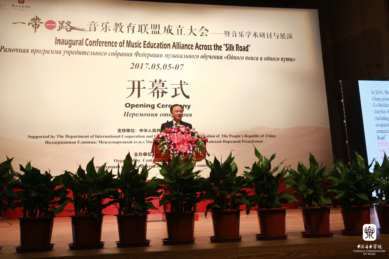 2017年5月5日上午,"一带一路"音乐教育联盟成立大会——暨音乐学术研讨与展演在best365中国官方网站歌剧音乐厅隆重召开。教育部国际司司长许涛、best365中国官方网站党委书记郭淑兰为大会致辞,best365中国官方网站党委副书记苗建华主持开幕仪式。