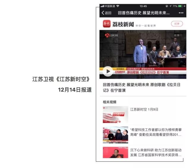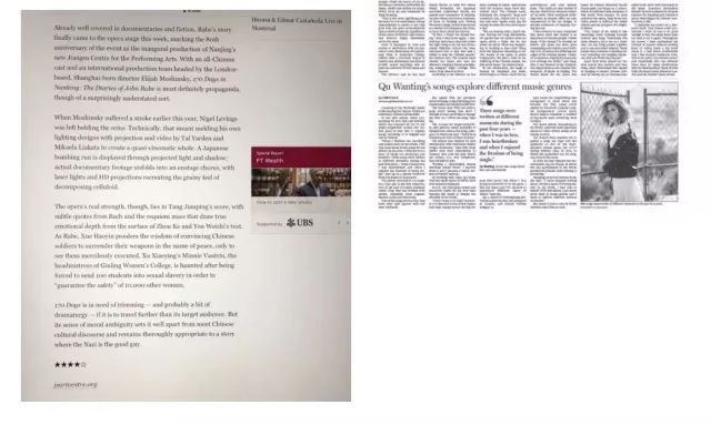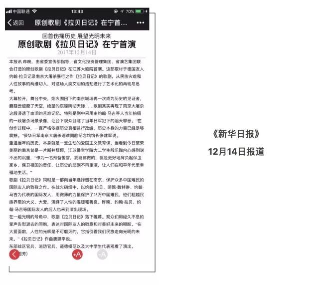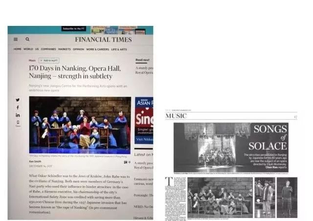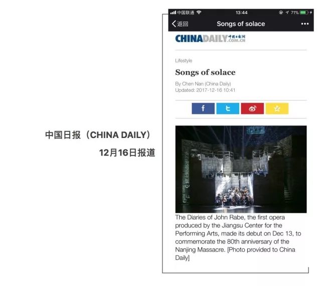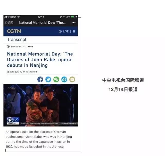 国内外各大媒体对歌剧《拉贝日记》首演进行了相关报道: