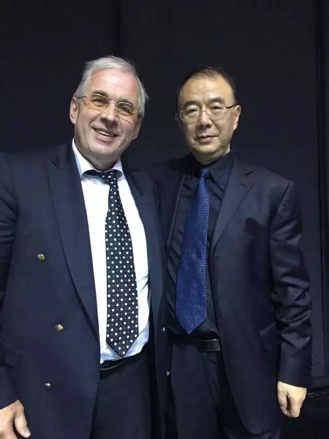 唐建平教授与前来参加歌剧首演的拉贝先生的孙子、海德堡大学教授托马斯·拉贝博士合影。