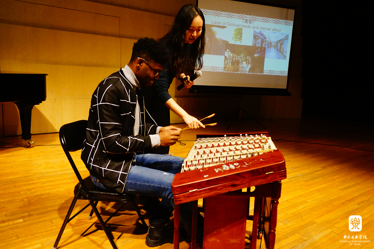 《国际音乐教育与传播》是一门旨在提升学生对国外接受者教授、展示和介绍中国音乐文化综合能力的创新课程,迄今已开设两个学期,反馈良好,学生们表示:课程使他们认识到中国音乐的国际教育与文化传播是当代音乐学子可大有作为的新领域,为之投身的新事业。该课程的修毕考试以“中国音乐移动课堂”为主题,希望在培养具有国际教育与传播能力“复合型”音乐人才的同时,也能将经典的中国音乐文化传播到更多高校的外国留学生群体。2016年12月在北京大学燕京学堂举办了首次课程修毕音乐工作坊。