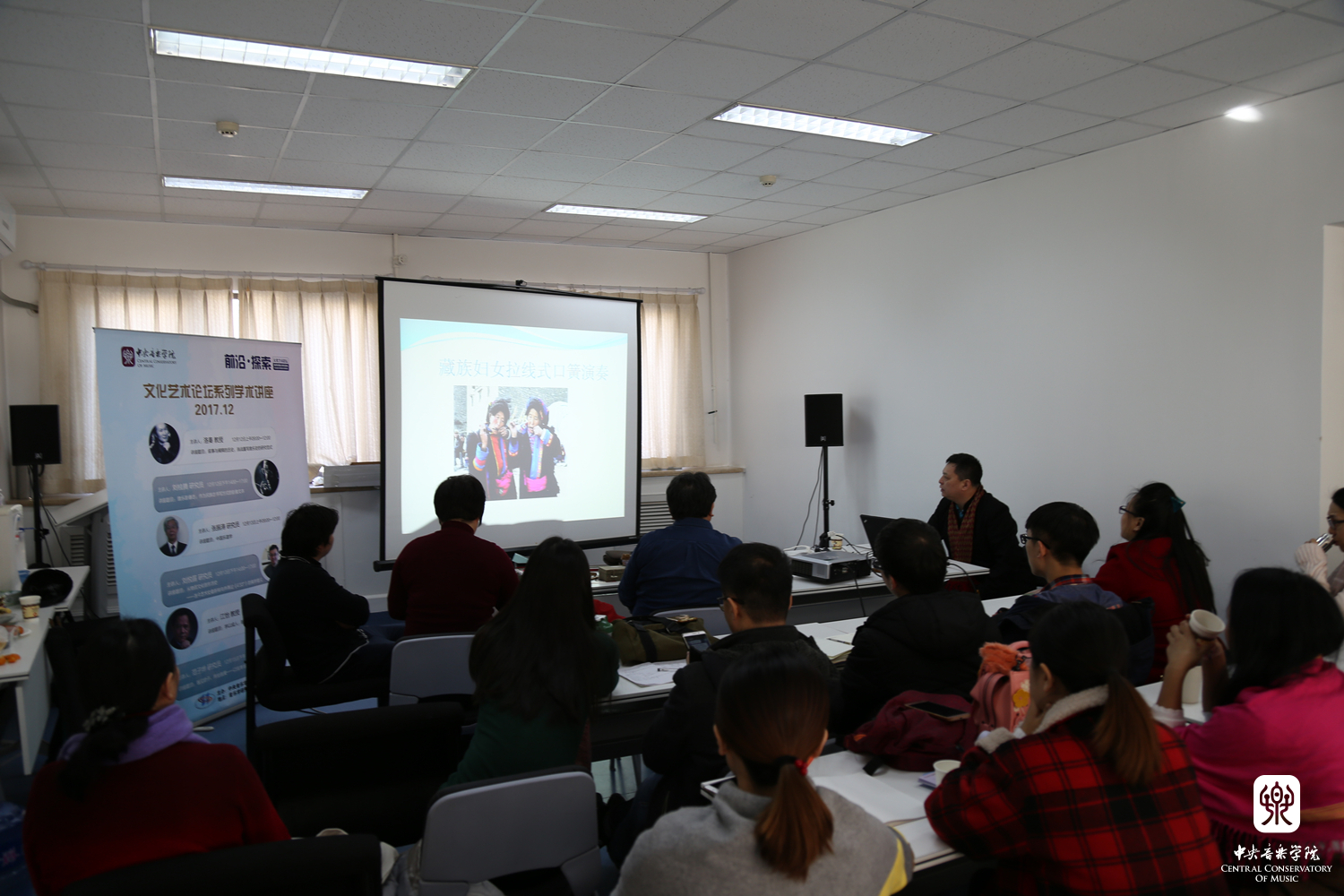2017年12月12日至15日,由音乐学研究所主办的“前沿•探索”文化艺术论坛系列学术讲座在音乐学研究所会议室举行。本次文化艺术论坛由6场讲座组成,担任主讲的受邀专家学者分别是:上海音乐学院洛秦教授、上海音乐学院“生态音乐学团队”特聘专家刘桂腾研究员、中国艺术研究院音乐研究所张振涛研究员、中国社会科学院哲学所刘悦笛研究员、北京师范大学江怡教授,以及中国社会科学院文学研究所范子烨研究员。音乐学研究所所长贾国平教授、副所长宋瑾教授、副所长汤琼教授和音乐学系主任安平教授分别担任了相关场次讲座的主持人。音乐学研究所全体在站博士后、在所访问学者,以及院内外诸多专家学者、博士生、硕士生等参加了此次文化艺术论坛系列讲座活动。