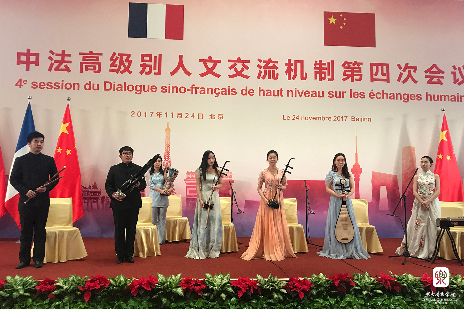 中法高级别人文交流机制第四次会议2017年11月24日在钓鱼台国宾馆举行。中国国务院副总理刘延东与法国外交部长勒德里昂共同出席和主持会议。