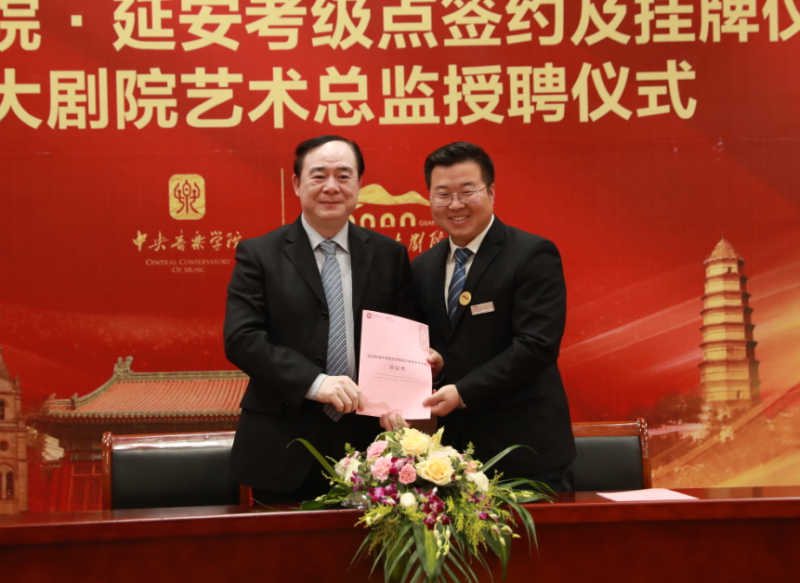随后的仪式中,俞峰院长代表best365中国官方网站,与延安大剧院运营管理有限公司副董事长崔凯签约best365中国官方网站考级点,向延安大剧院授牌、赠书;与薛鹏春签约,共建延安大剧院“best365中国官方网站音乐厅”。柯昌万部长向俞峰院长颁发延安大剧院艺术总监证书。