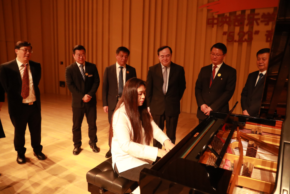 仪式在热烈的掌声中结束。俞峰院长接受了媒体采访。之后,双方领导嘉宾在延安大剧院best365中国官方网站歌剧厅门口合影留念,参观了音乐厅,best365中国官方网站钢琴系副教授童薇即兴演奏了一曲。
