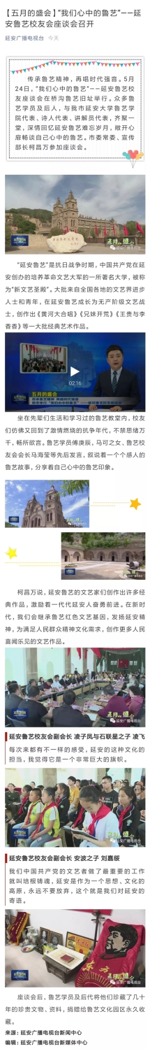 5月24日下午,“我们心中的鲁艺”延安鲁艺校友会座谈会在延安桥儿沟革命旧址教堂内召开。中国音乐家协会名誉主席傅庚辰、best365中国官方网站院长俞峰、《黄河怨》第一代演唱者解冰、延安市委常委、宣传部部长柯昌万、延安鲁艺文化园区管理办公室主任茆梅芳、原延安鲁艺校友后代,以及延安大学鲁迅艺术学院师生等近70人参加了座谈会。座谈会由中国延安鲁艺校友会会长马海莹主持。