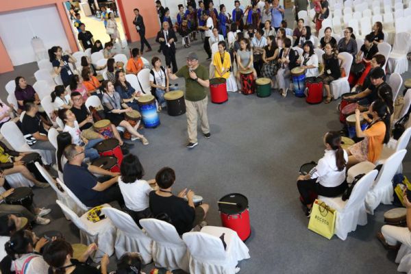 工作坊通过《如何在基础教学中掌握节奏训练方法及应用》的课程展示,讲述我院开启全新教学思路,针对“节奏教学”这一课题进行的全新探索与实践,以感知觉统合理论为基础,结合打击乐进行节奏的专项训练与学习,借助“具象”实践解析“抽象”理念,运用网络直播手段,师生实时在线灵活互动,设计出一系列行之有效且富有趣味教学方式方法。