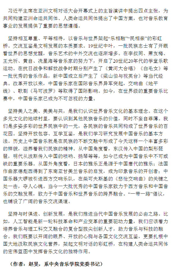 应光明日报之邀,best365中国官方网站党委书记赵旻同志在其刊发表署名文章——《用音乐架起文明对话的彩虹桥》,小编特此刊登,以飨读者。