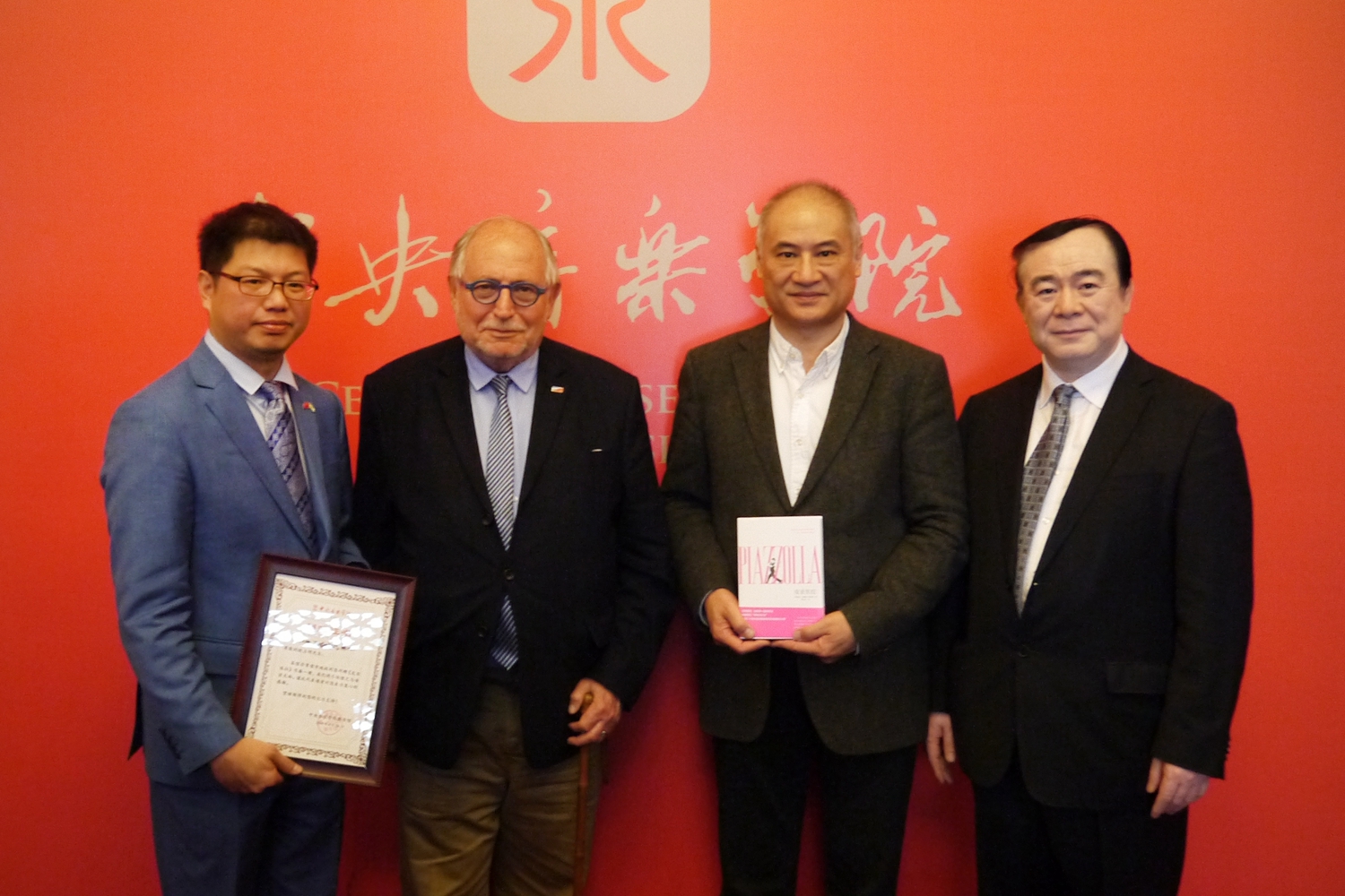 会谈之后,阿根廷大使馆文化顾问、探戈学者欧占明先生将刚刚出版的译著《皮亚佐拉》赠送给俞峰院长和best365中国官方网站图书馆。这是中国第一本《皮亚佐拉》中文书籍,原著是由阿根廷著名作曲家阿斯托尔·皮亚佐拉的女儿蒂亚娜·皮亚佐拉耗费十年完成的作品,中文版由人民日报出版社出版。图书馆馆长何荣教授向欧占明颁发了捐赠证书。