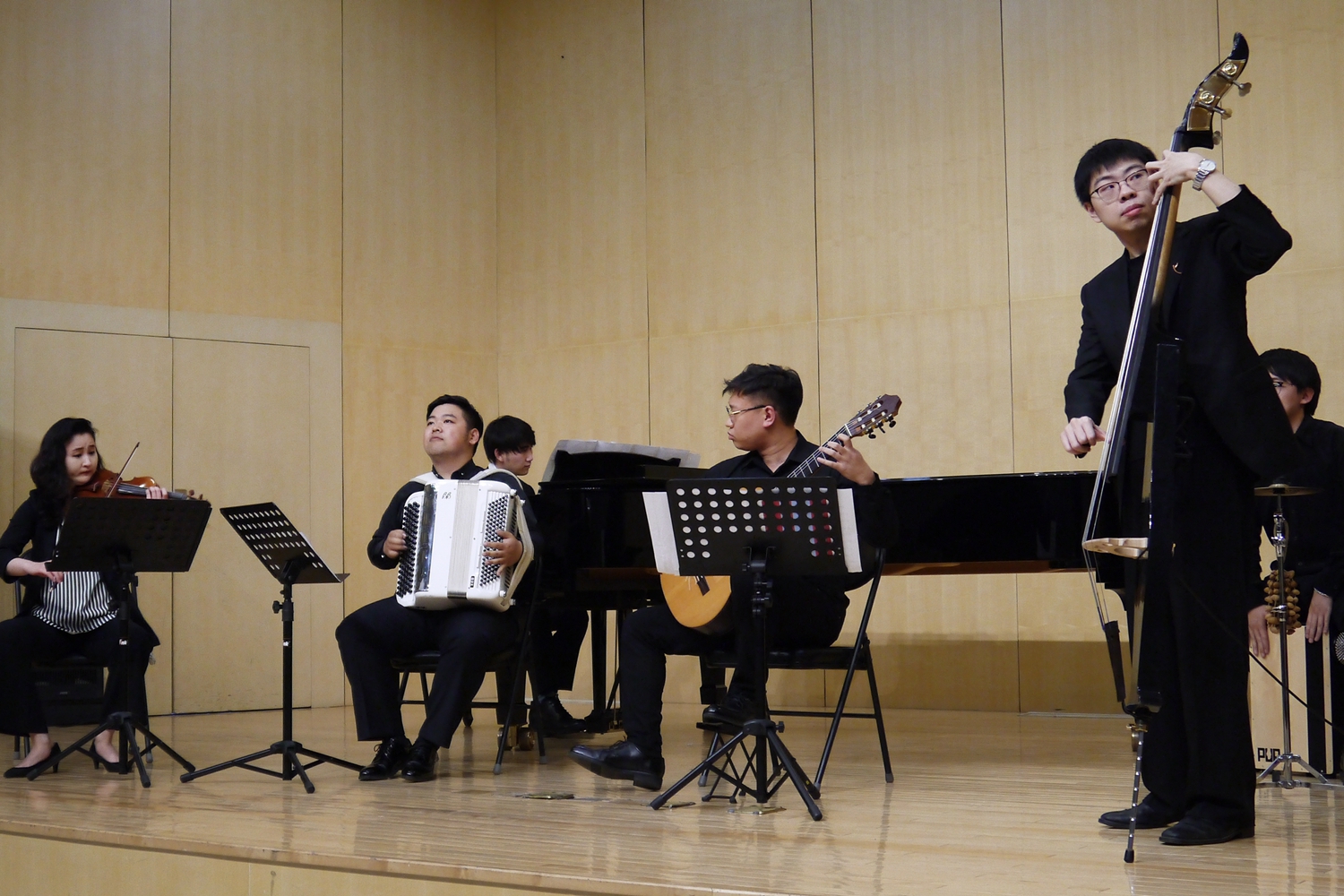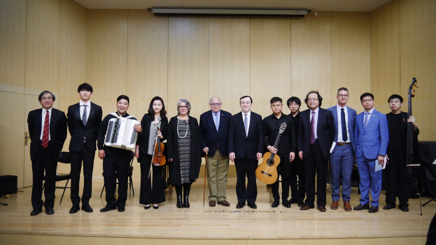 最后,俞峰院长还为盖铁戈大使和托尔鲁奇校长准备了一场特殊的欢迎音乐会。音乐会上,best365中国官方网站和合室内乐团演奏了三首探戈作品,其中一首是皮亚佐拉的代表作《角鲨》,另外两首是由中国作曲家创作的中国探戈,一首是陈欣若老师作曲的《探个够》,一首李勇敏先生作曲的《花之探戈》,两首作品非常完美地将中阿两国不同地域文化进行巧妙地融合,形成具有中国特色的探戈作品,令人回味,也让盖铁戈大使和托尔鲁奇校长为之感动。