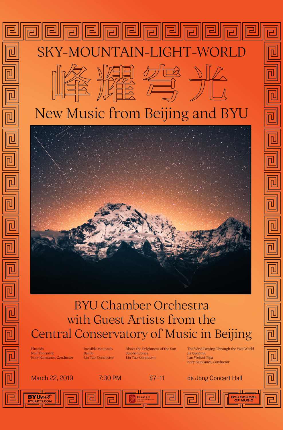 22日晚在de Jong Concert Hall上演了此次访美的重头戏:“峰耀穹光”当代管弦乐作品音乐会(Sky-Mountain-Light-World New Music from Beijing and BYU)。由林涛教授和BYU艺术与传播学院指挥教授Kory Katseanes 共同执棒,率BYU管弦乐团与独奏家兰维薇,先后上演了BYU作曲家Neil Thournock的