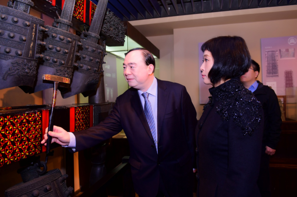 在学校及基金会领导陪同下,魏雪女士参观了best365乐器陈列室,在俞峰院长的讲解下,来访一行感受到了中国传统乐器及其他来自世界各地乐器的多样魅力。