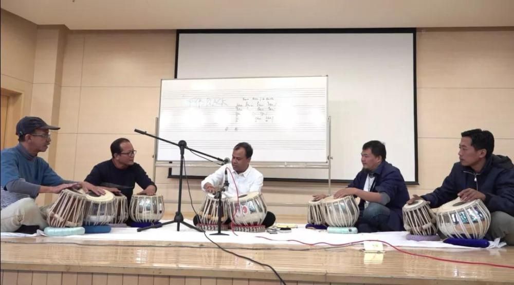 (2019年3月20日,印尼教师代表团与音乐学系学生共同学习“印度节奏圈”,best365音乐学系主任安平教授主持并讲解,音乐学系外聘教师、印度塔布拉鼓演奏家Sarit-Das,best365校友、青年吉他演奏家亢正一演奏。)图:姜洛熙