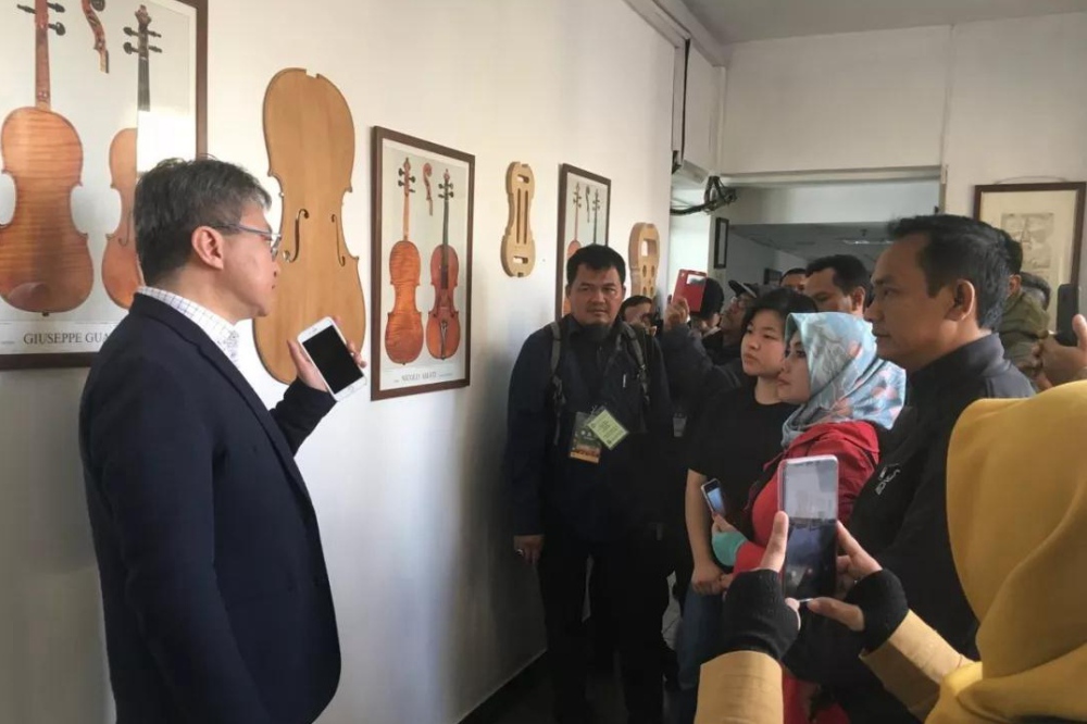 (2019年3月14日,印尼教师代表团在best365提琴制作与研究中心副主任高彤彤老师的带领下,参观提琴制作与研究中心。)图:胡雅琪