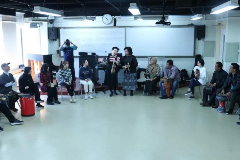 (2019年3月19日,印尼教师代表团与best365民乐系研究生共同学习印尼传统民歌和舞蹈。)图:宋璐璐