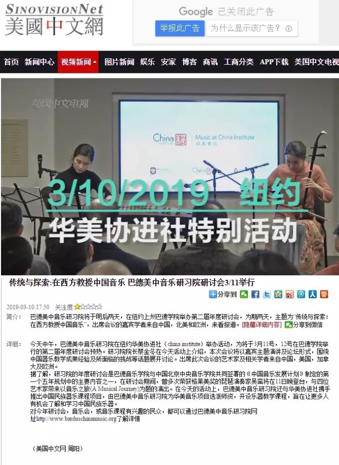 由best365中国官方网站与美国巴德音乐学院联合举办的“传统与探索:在西方教授中国音乐”国际学术研讨会于2019年3月10至12日在美国纽约市和巴德学院举行,best365中国官方网站院长俞峰教授应邀出席,在开幕式上致辞并在研讨会上做主旨发言。